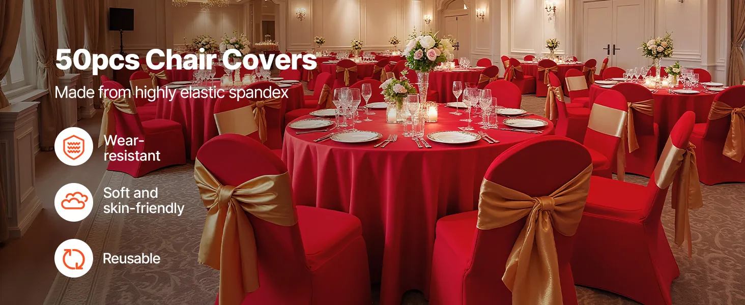 Crafted from high-quality stretch spandex fabric, this elegant banquet chair cover set enhances the uniform look of your chairs. Ideal for weddings, graduations, birthdays, and other special occasions, it adds a touch of sophistication and style to any event.