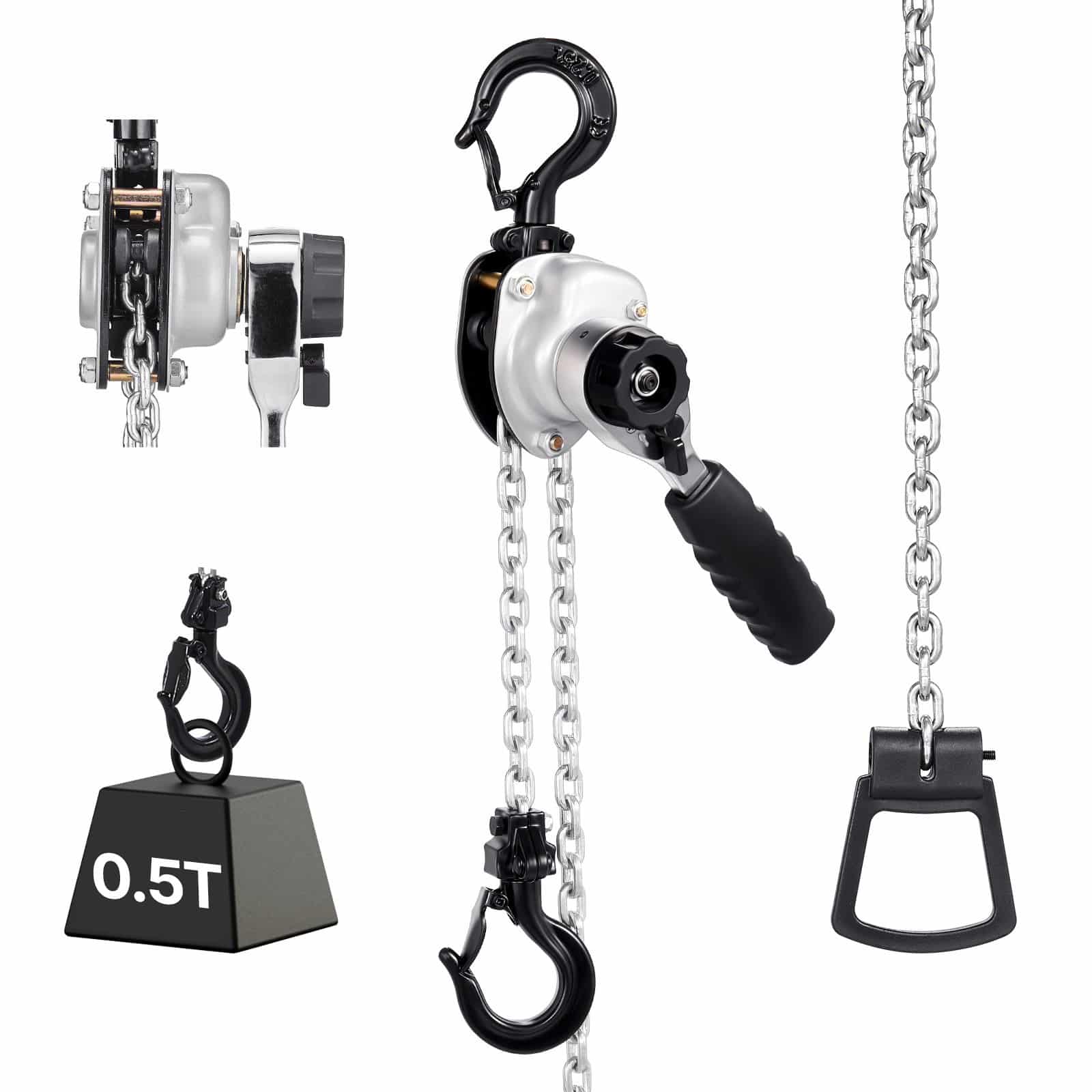 VEVOR Manuālā Sviras Ķēdes Pacēlājs 500kg, 6m G80 Tērauda Ķēde, Dubultā Bremze, 360° Āķi Noliktavai, Garāžai, Celtniecībai