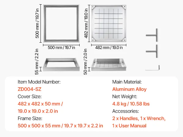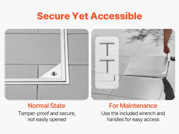 • Easy-Open Cover: This drain channel inspection cover comes with 2 lifting handles and 1 wrench, making it quick to lift and open for inspection and routine maintenance