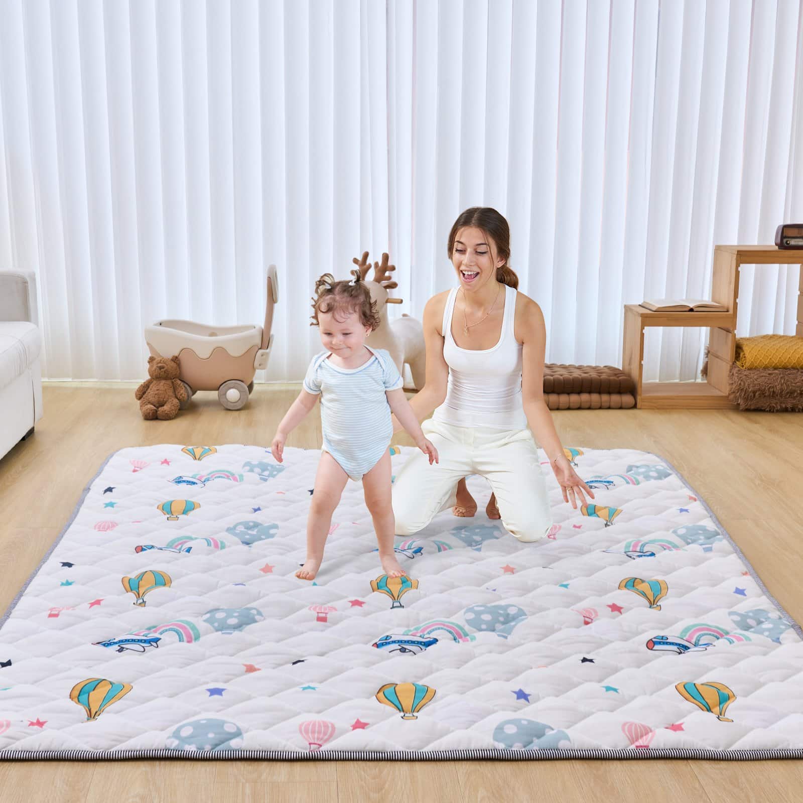 The non-slip bottom prevents the play mats for babies and toddlers from shifting and slipping, helping your baby learn to crawl and walk safely.