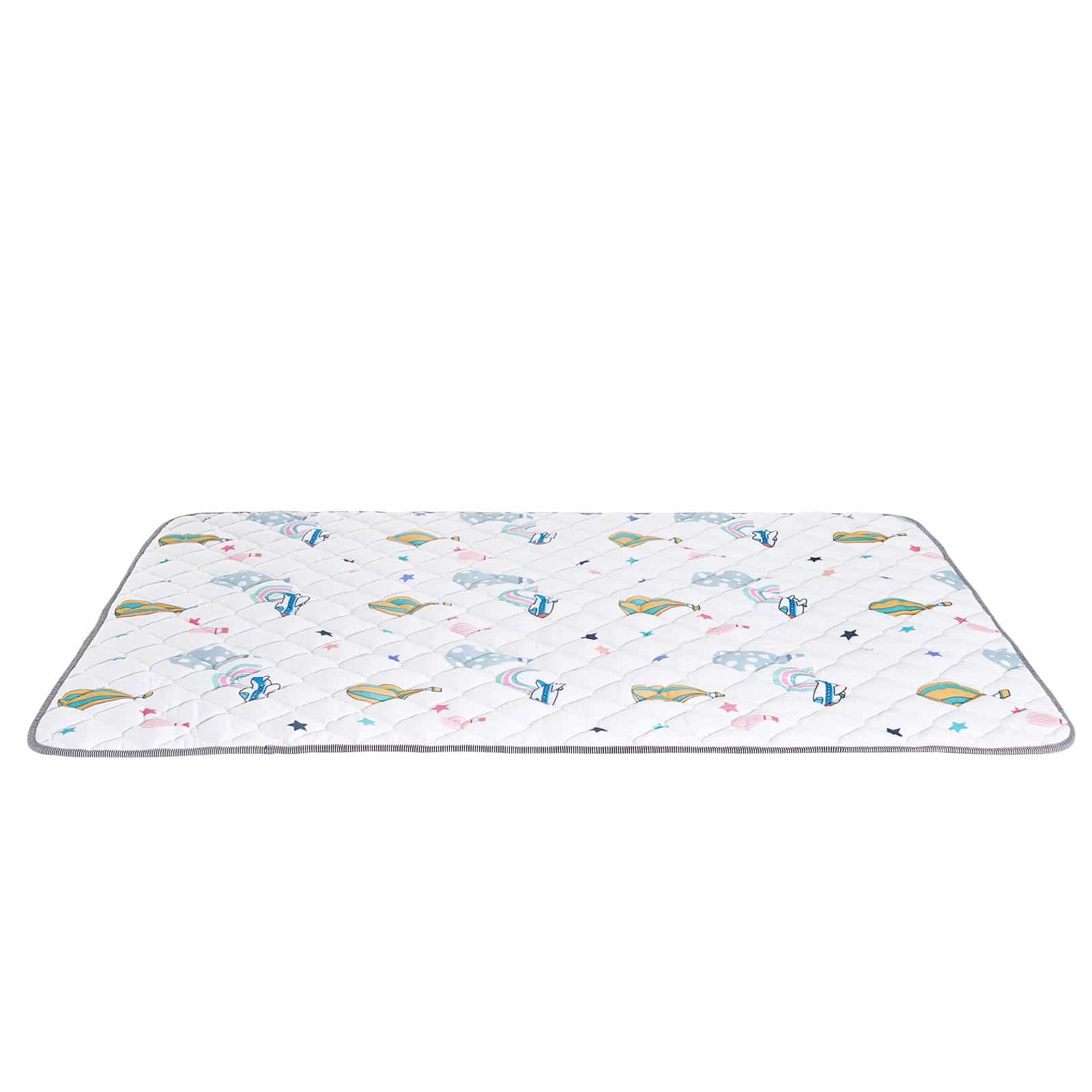 The floor mat is made from synthetic fiber material, with built-in thick synthetic cotton, which provides cushioning to prevent direct impact with the floor and protect your baby from injuries.