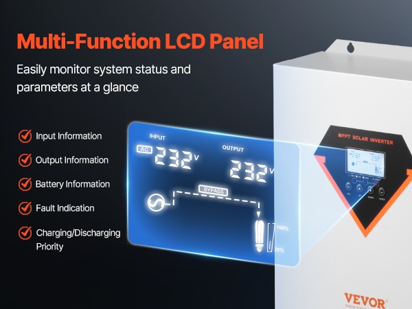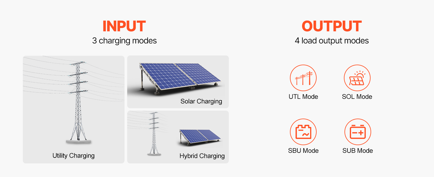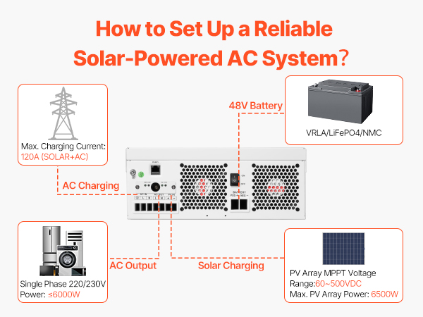VEVOR Hybrid Solar Inverter, 6000W, All in One Pure Sine Wave Power Inverter Charger, 48V DC to 220/230V AC, with Built-in WIFI 120A MPPT Solar Controller, for Off-Grid System Lead Acid Lithium Battery