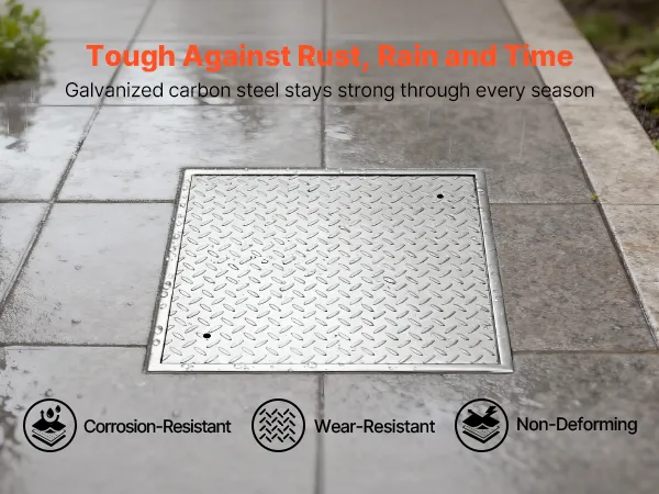 • Built to Last: Made from high-strength carbon steel with a galvanized surface, this square septic tank access cover offers corrosion resistance, deformation resistance, and enhanced durability