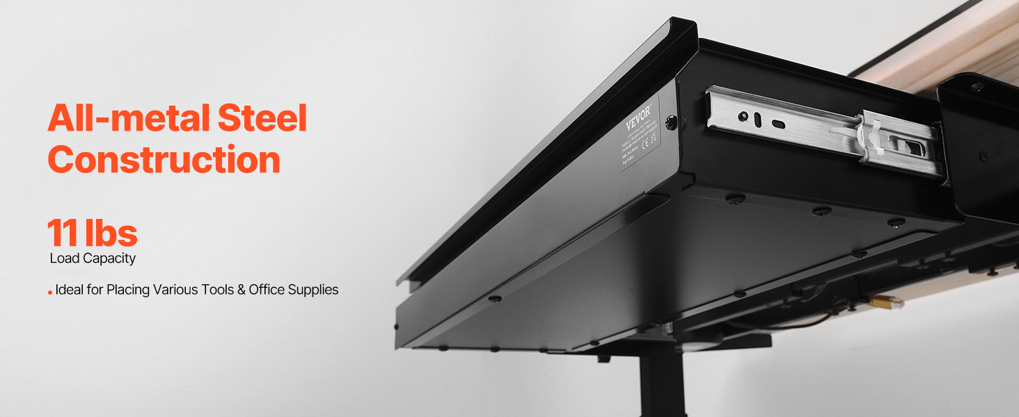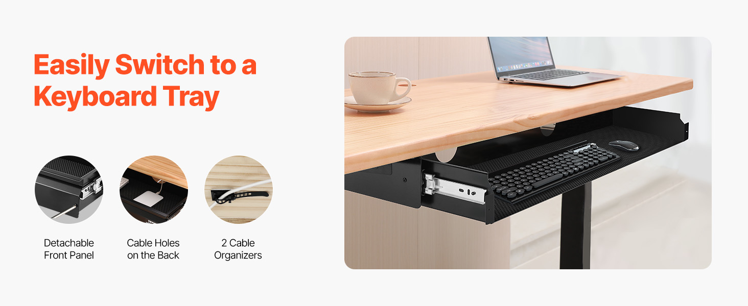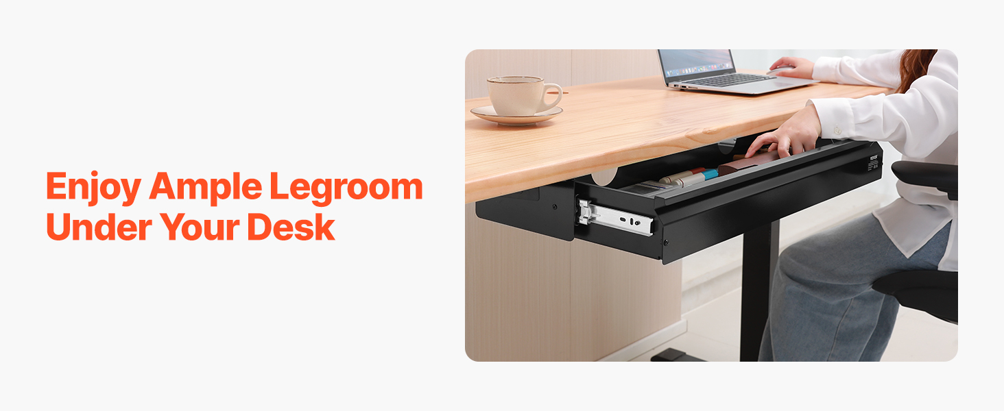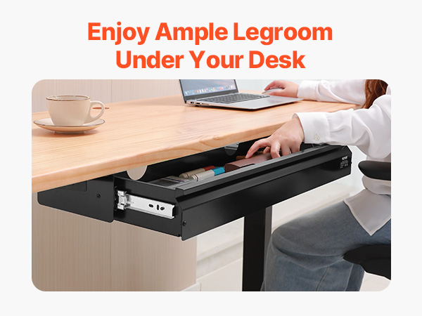 Šī 26 collu zemgalda atvilktne kalpo gan kā atvilktne, gan tastatūras paliktnis. Ar tikai 3,2 collu augstumu tā nodrošina papildu uzglabāšanas vietu, neapdraudot vietu kājām. Uzturiet savu rakstāmgaldu kārtīgu un efektīvu, vienlaikus nodrošinot pietiekami daudz vietas ērtai pārvietošanai zem galda.