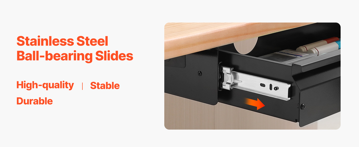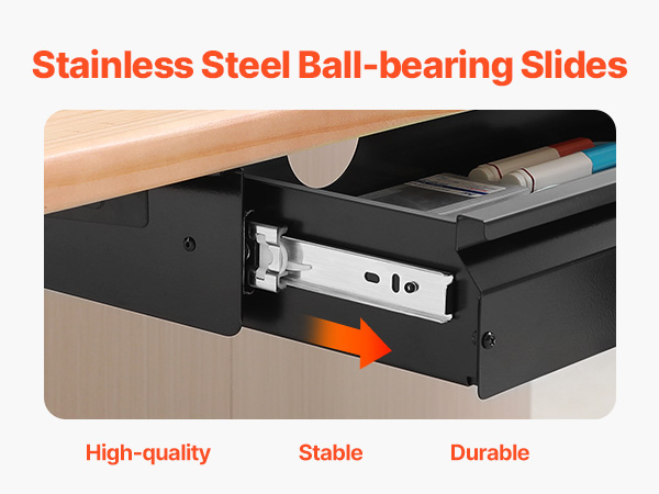 VEVOR 26" Wide Under Desk Drawer Slide Out, Under Desk Mounted Pull-out Drawer Attachment, Hidden Desktop Storage Organizer, Under Table Pencil Drawer for office Home Sit Stand Workstation, 29x9x4 in