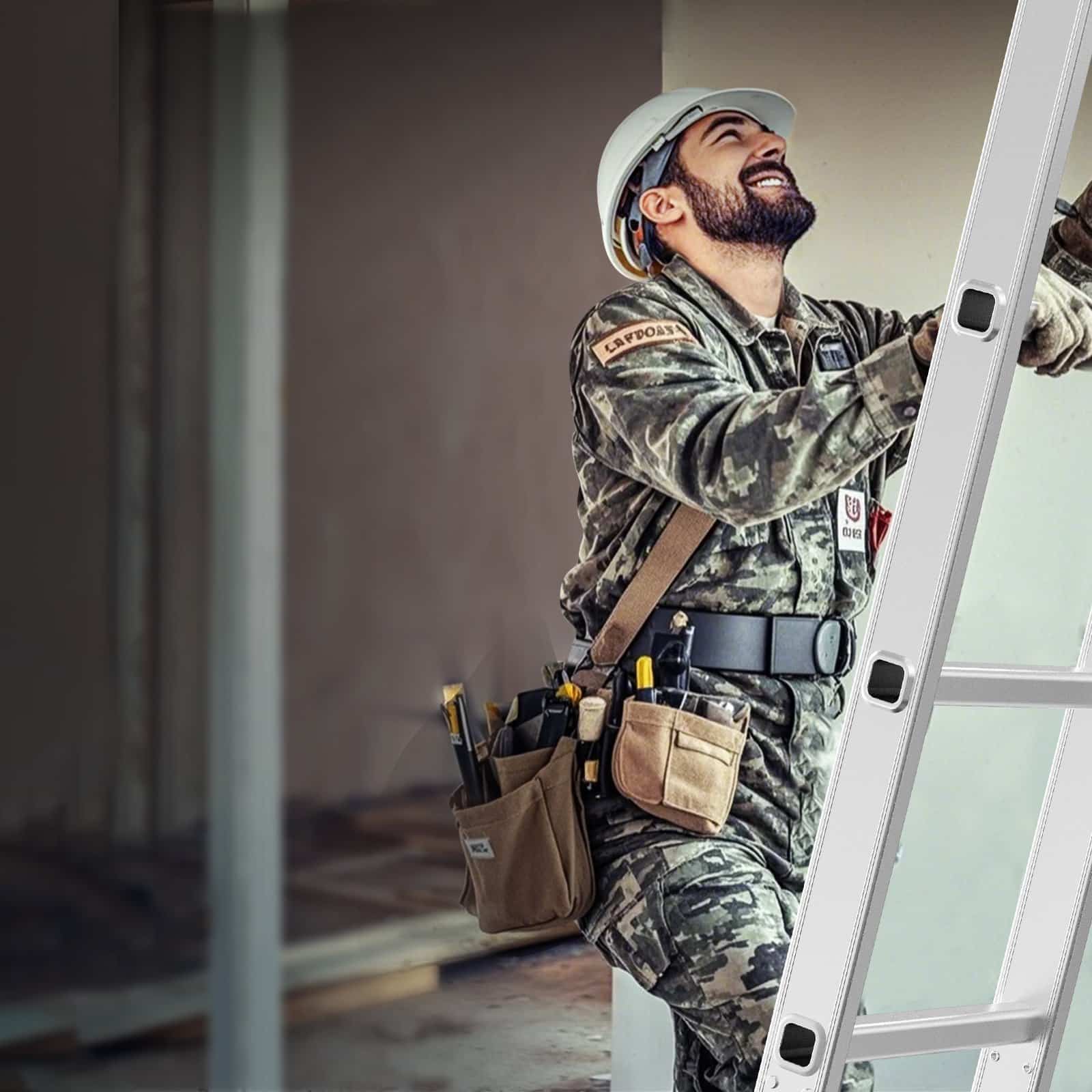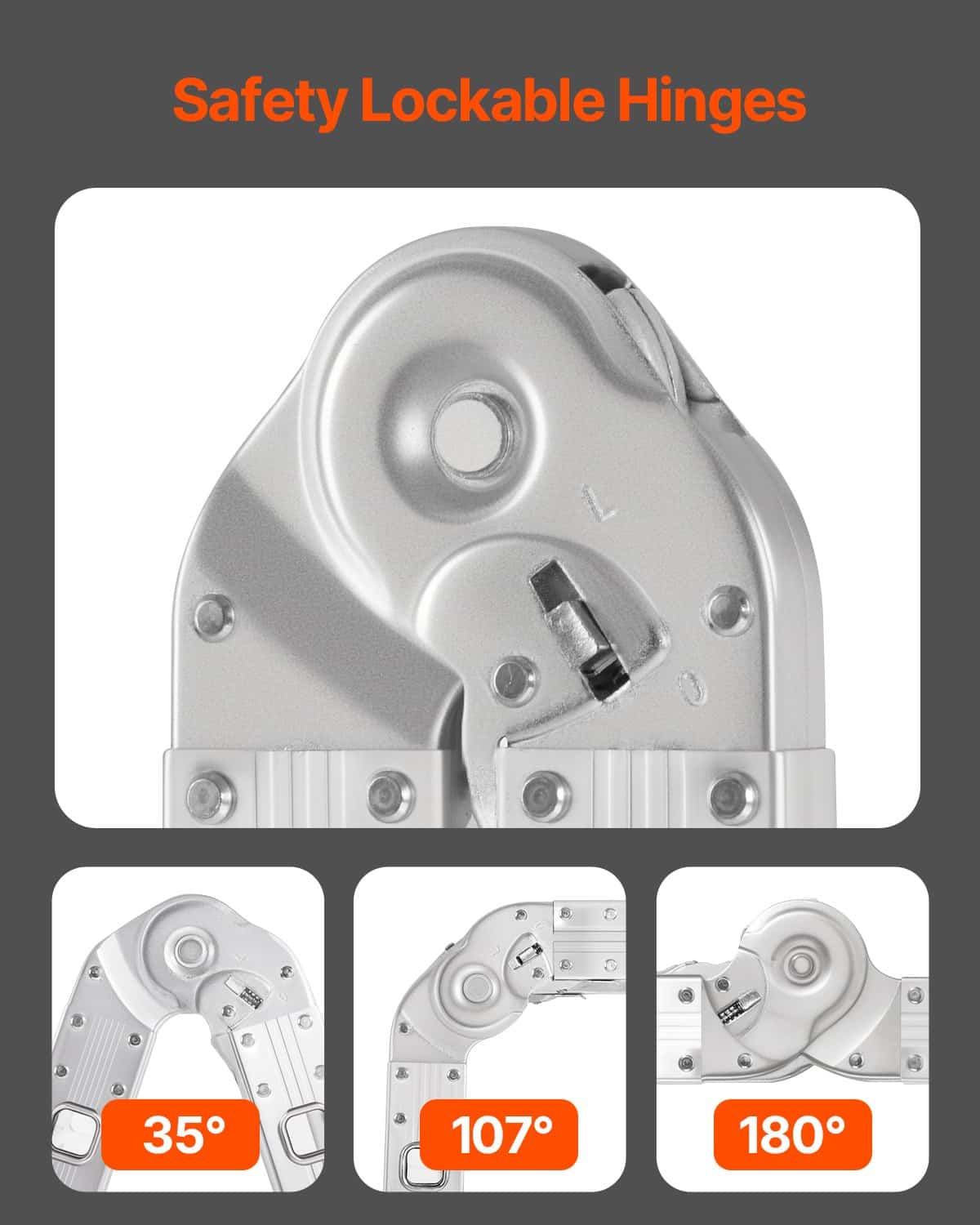Šīs daudzfunkcionālās saliekamās kāpnes atbilst visām jūsu augstuma piekļuves vajadzībām. Izgatavotas no pastiprināta alumīnija, ir izturīgas pret locīšanos vai deformāciju. Eņģe ir regulējama 35°, 107° un 180° leņķī. Lieliski piemērotas mājas, darba un āra darbiem, nodrošinot stabilitāti un daudzpusību jebkurā situācijā.