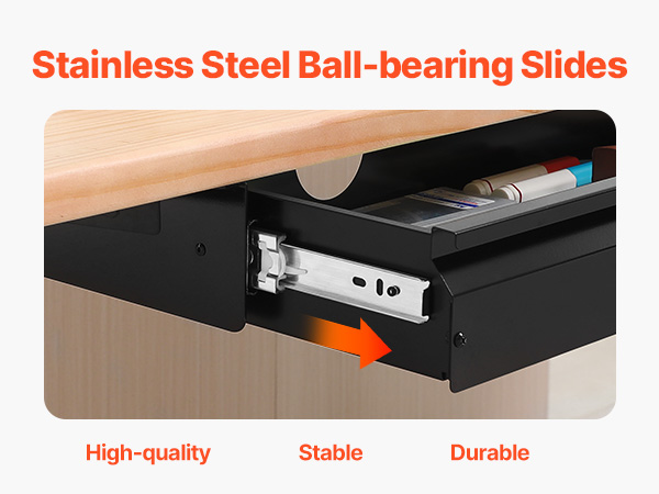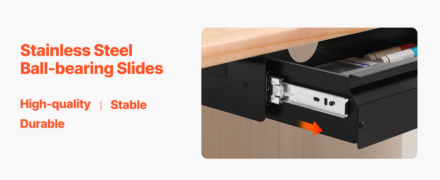 VEVOR 33" Wide Under Desk Drawer Slide Out, Under Desk Mounted Pull-out Drawer Attachment, Hidden Desktop Storage Organizer, Under Table Pencil Drawer for office Home Sit Stand Workstation, 33x9x4 in