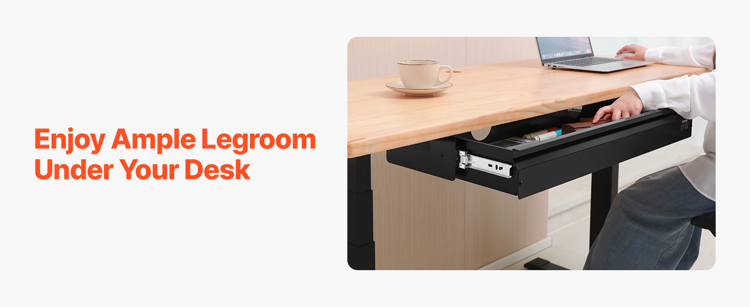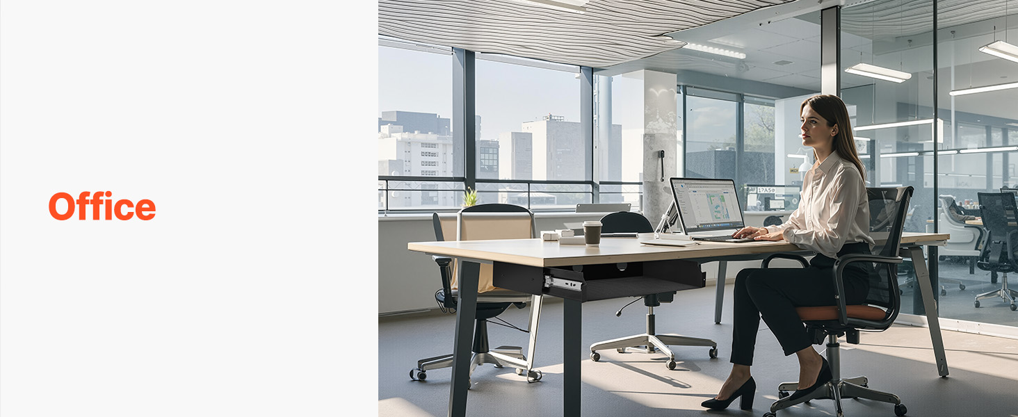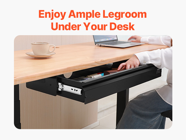 Šī 33 collu zemgalda atvilktne kalpo gan kā atvilktne, gan tastatūras paliktnis. Ar tikai 3,2 collu augstumu tā nodrošina papildu uzglabāšanas vietu, neapdraudot vietu kājām. Uzturiet savu rakstāmgaldu kārtīgu un efektīvu, vienlaikus nodrošinot pietiekami daudz vietas ērtai pārvietošanai zem galda.