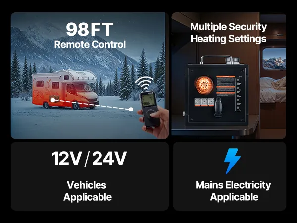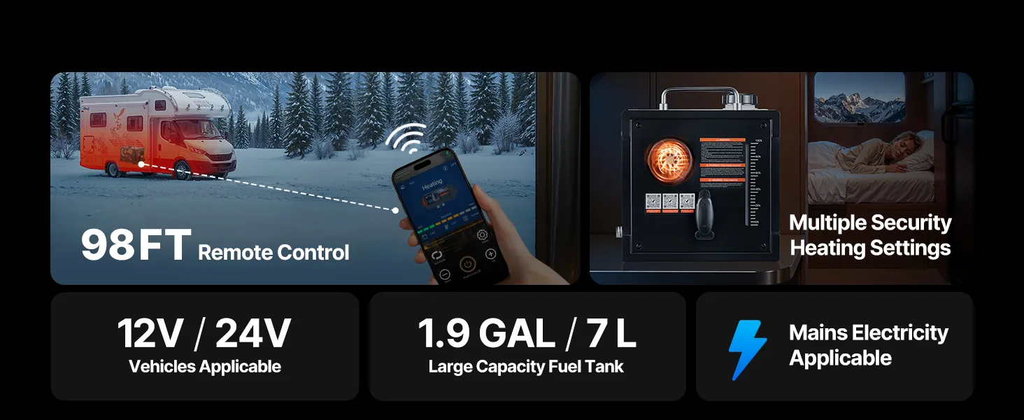 Šis 8 kW pārnēsājamais dīzeļdegvielas sildītājs tiek pievienots transportlīdzekļa elektrotīklam un komplektā ietilpst adapteris elektrostacijām vai mājsaimniecības maiņstrāvas tīklam. Tas nodrošina ātru un efektīvu apsildi teltīm, zemledus makšķerēšanai, kemperiem, kravas automašīnām, apvidus automašīnām, furgoniem un citām automašīnām. Tas ir paredzēts darbam aukstā vidē un ātri sasilda lielas telpas.