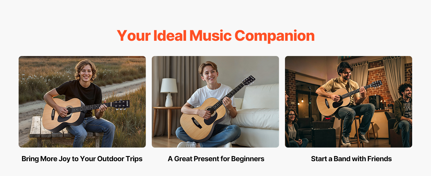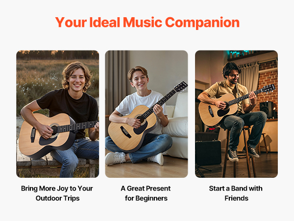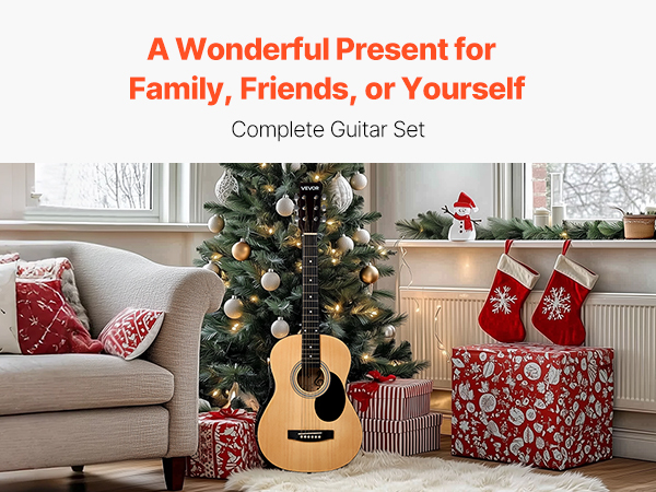 VEVOR 36 in / 914,4 mm Dreadnought Acoustic Guitar Natural Beginner Bundle Gig Bag for Teen