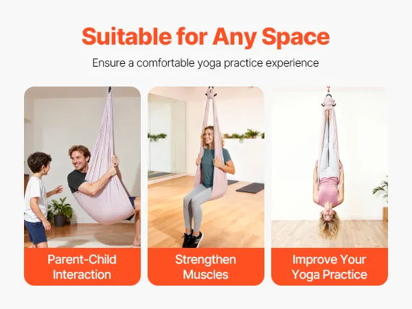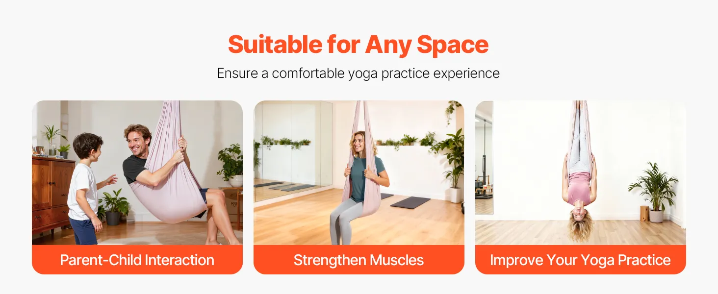 Equipped with all necessary hardware like steel carabiners and daisy chains, our aerial pilate silk yoga swing set for home allows quick transitions between hammock and swing modes. Adapt your space and style effortlessly, offering a richer, more engaging aerial yoga experience for every practitioner.