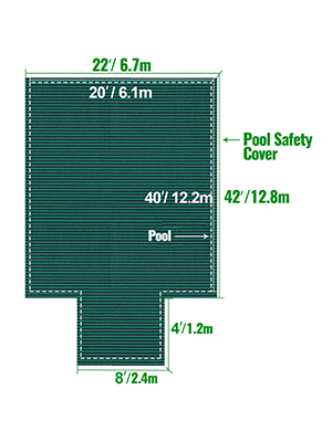 Our safety pool cover features a generous 2ft overlap on all sides to assure complete coverage. The overall cover measures 22'x 42' to fit a 20'x 40' inground swimming pool.