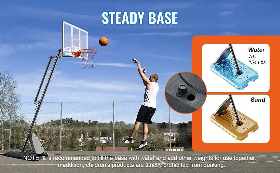Āra basketbola grozam ir bieza un stabila pamatne. Pamatnes piepildīšanai var izmantot ūdeni vai smiltis, un tad spēlēm būs stabils un drošs pamats.