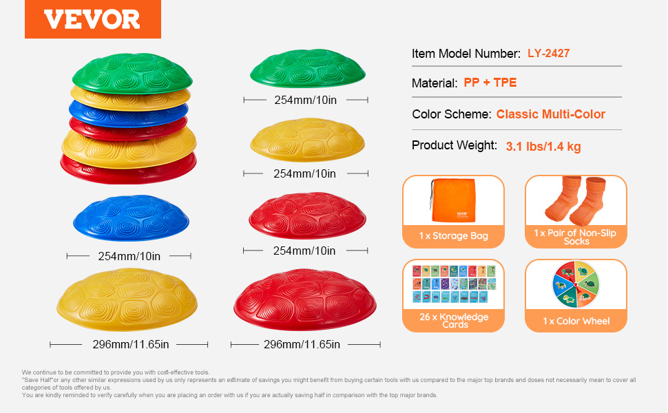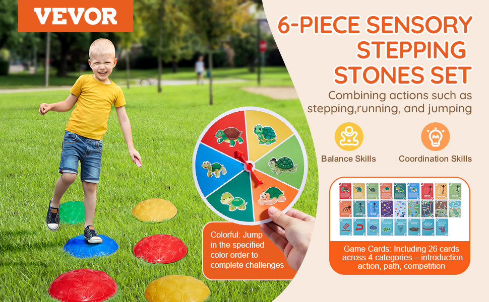VEVOR Turtle Balance Stepping Stones, 6 PCS, Up to 220 lbs Kids Turtle Jumping Stones Steps Stones, Toddler Obstacle Course Coordination Game Toys Indoor or Outdoor Play for Children Aged 3 4 5 6 7 8+