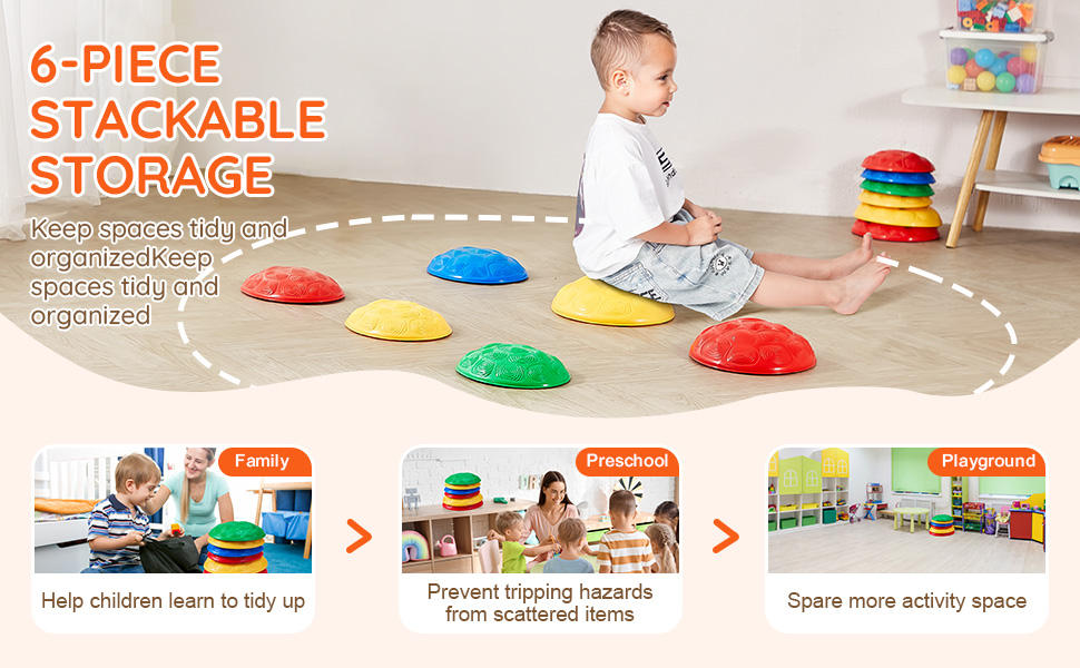 Mūsu līdzsvara akmeņi ir izstrādāti tā, lai tos būtu viegli sakrauj, ietaupot vietu un vienkāršojot uzglabāšanu. Izveidojiet sakārtotu un organizētu rotaļu laukumu pat nelielās telpās!