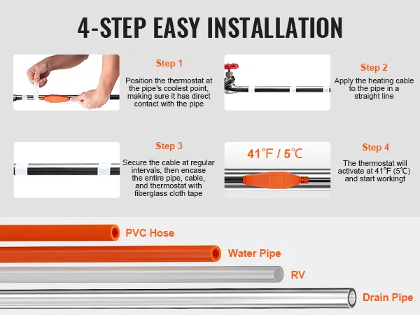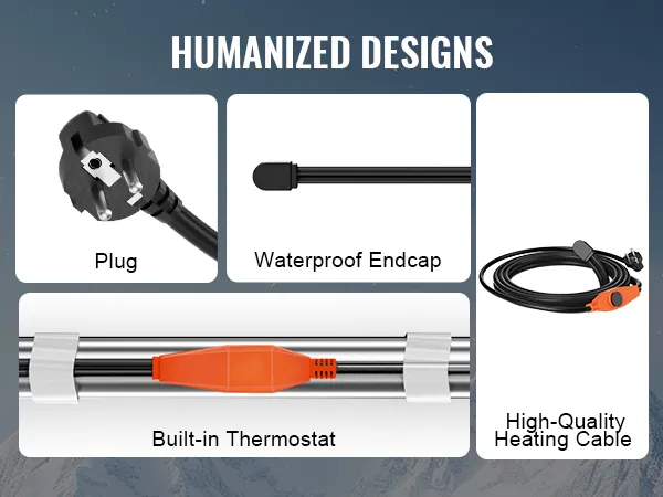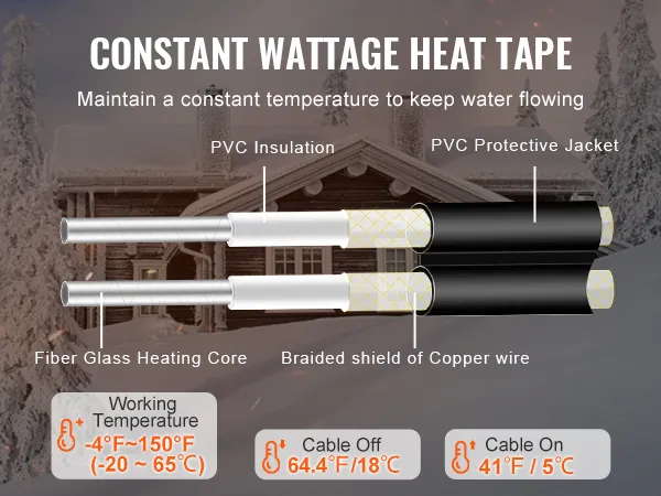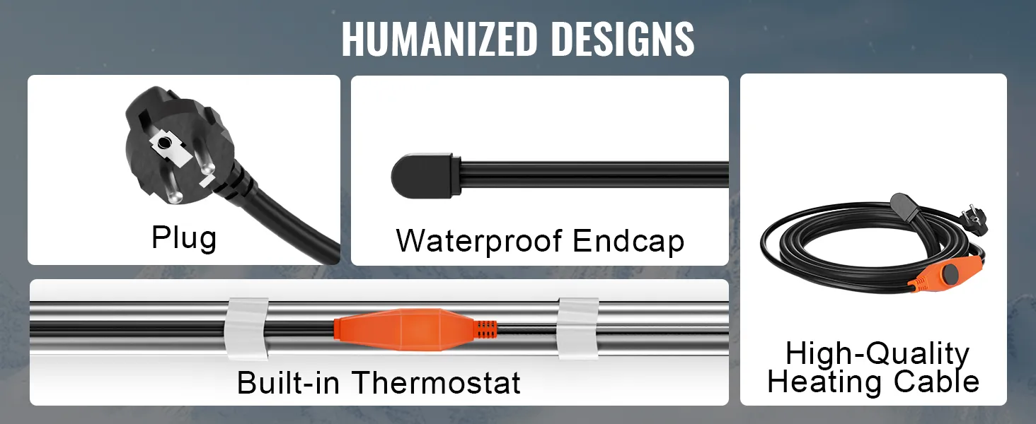 VEVOR Pipe Heating Cable, 2m 23W/m Heat Tape for Pipes with Built-in Thermostat, Water Pipe Heat Cable Protects PVC Hose, Metal and Plastic Pipe from Freezing