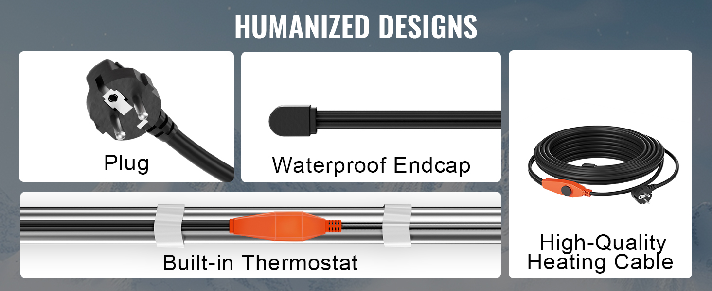 VEVOR Pipe Heating Cable, 9m 23W/m Heat Tape for Pipes with Built-in Thermostat, Water Pipe Heat Cable Protects PVC Hose, Metal and Plastic Pipe from Freezing