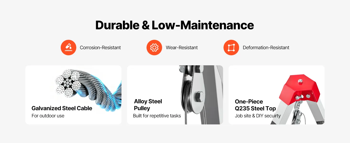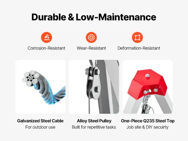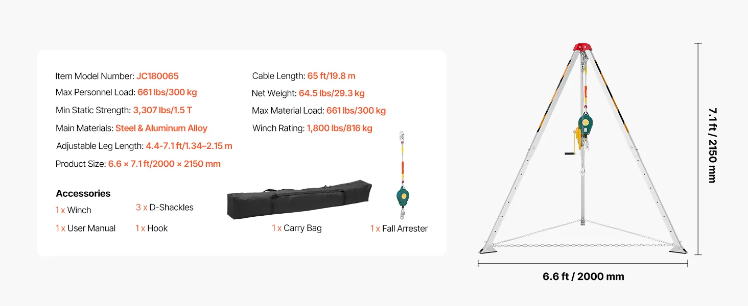 VEVOR Confined Space Tripod Kit, Heavy Duty Rescue Tripod Lifting Hoist 816 kg Winch, 1.25 m Adjustable Legs, 19.8 m Cable Portable Kit, 10 m Fall Protection, 1.34-2.15 m Working Height