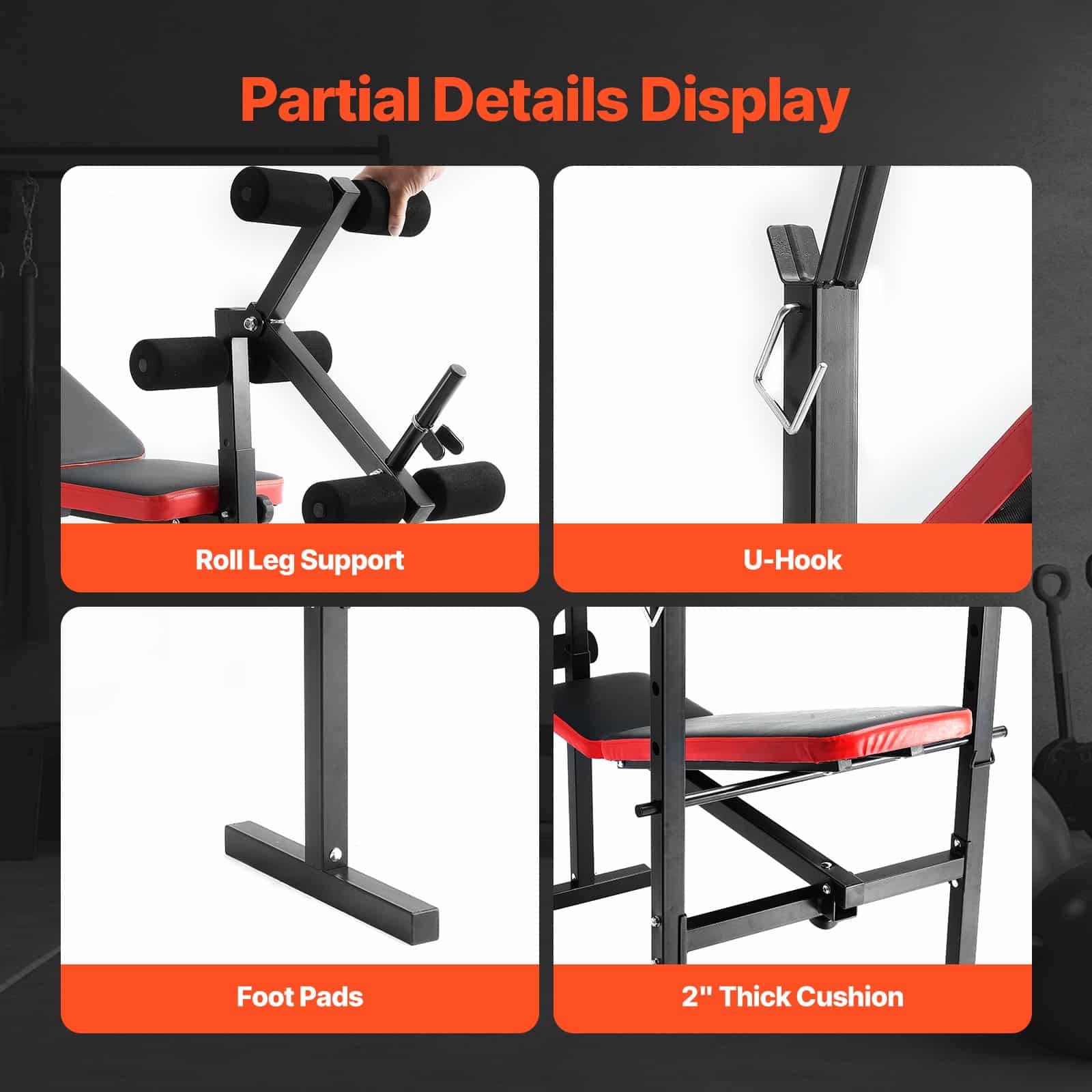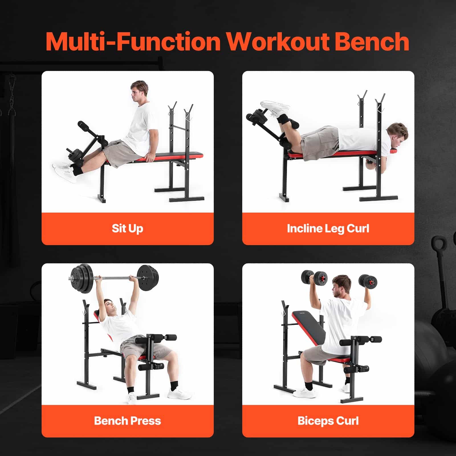 VEVOR Weight Bench, Multi-Functional Adjustable Weight Bench Press for Full Body Workout, 380lbs Exercise Sit up Bench for Home Gym Strength Training, Flat Bench with Quick Folding & Fast Adjustment
