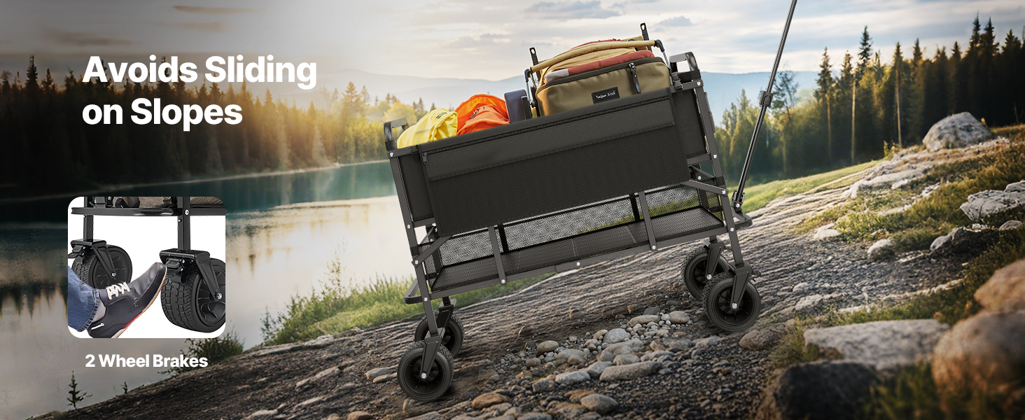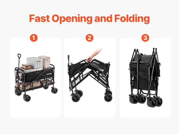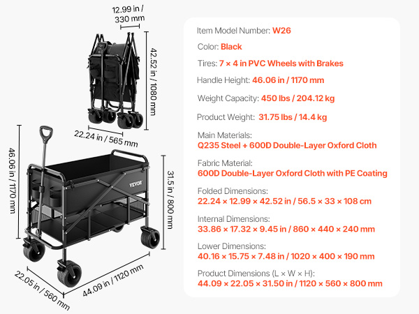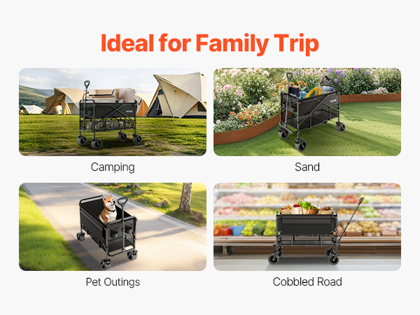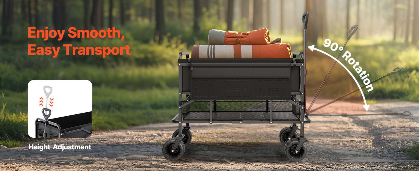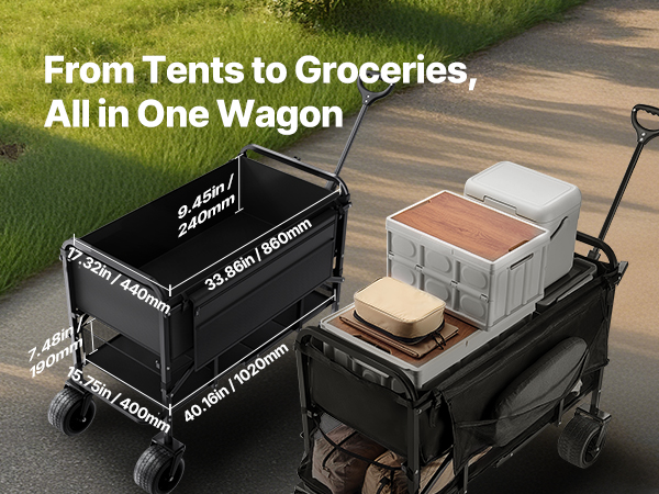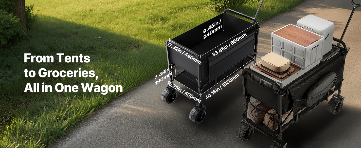VEVOR Double Decker Wagon Collapsible, 400L Heavy Duty Folding Wagon Cart, Extended Long Garden Cart with All-Terrain Wheels, Support Up to 450lbs, Outdoor Utility Wagon for Camping, Sports, Shopping