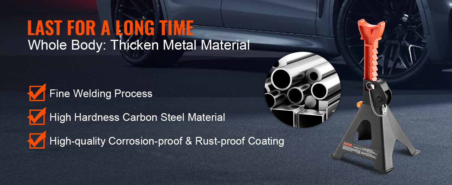 VEVOR's jack stand provides a secure and stable environment for car maintenance. Thanks to the high-quality and heavy-duty materials, it can support heavy vehicles without breaking a sweat. Power and reliability are here!