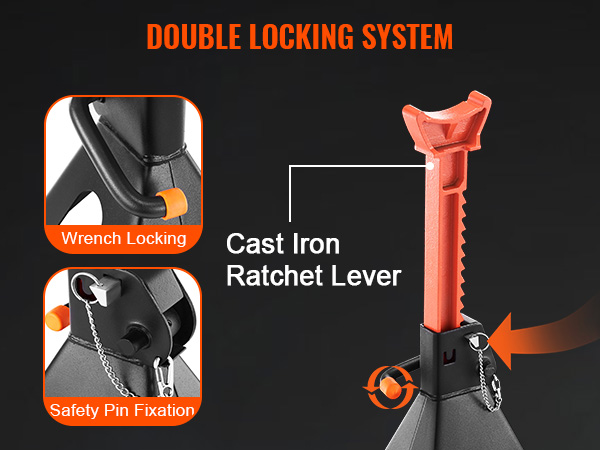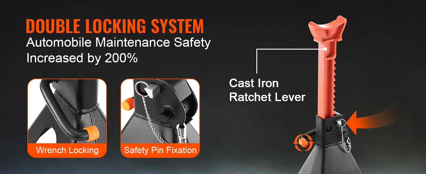 VEVOR's jack stand provides a secure and stable environment for car maintenance. Thanks to the high-quality and heavy-duty materials, it can support heavy vehicles without breaking a sweat. Power and reliability are here!