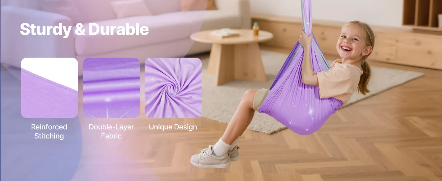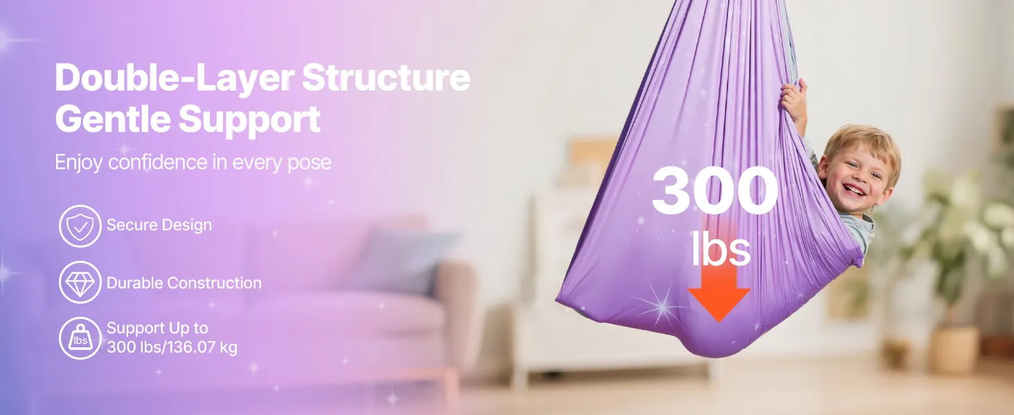 Every detail of this indoor & outdoor sensory swing is carefully crafted. Anti-slip sleeves boost stability, fabric is machine washable, and a frosted PE storage bag includes a warning label for easy carrying. Fast assembly lets you start your aerial yoga without delay.