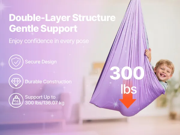 Durable steel carabiners and chains hold up to 300 lbs/136.07 kg, letting you stretch and move without limits. Spacious layout suits all users, emphasizing comfort and fluid motion. Enjoy every pose and transition with your cuddle hammock indoor for a refreshing yoga flow.