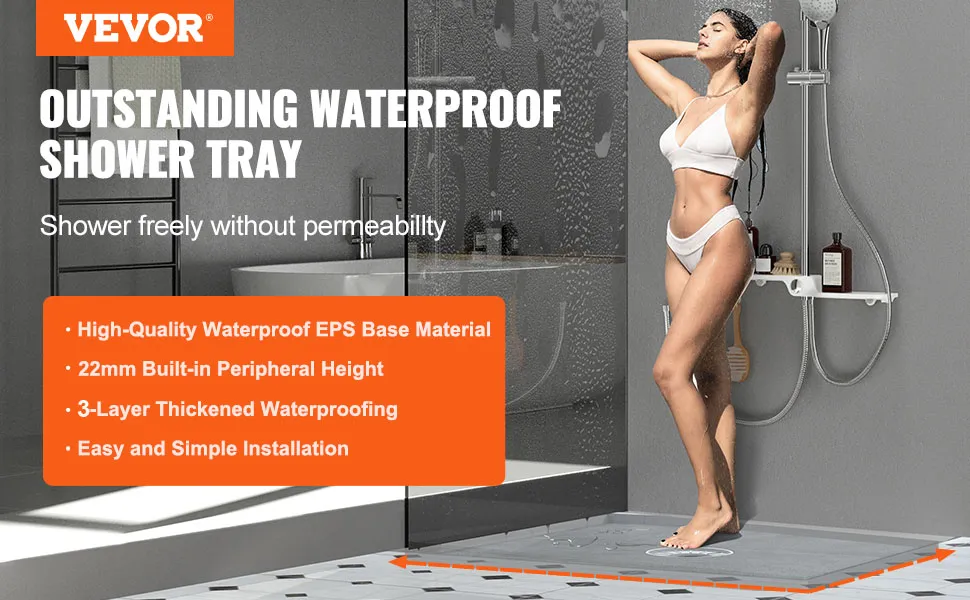 VEVOR Ūdensnecaurlaidīgs Dušas Norobežojuma Komplekts 914x914mm (36x36in) ar 160mm (6.3in) Centrālo Noteku, Viegls EPS Dušas Uzstādīšanas Komplekts Vannasistabai