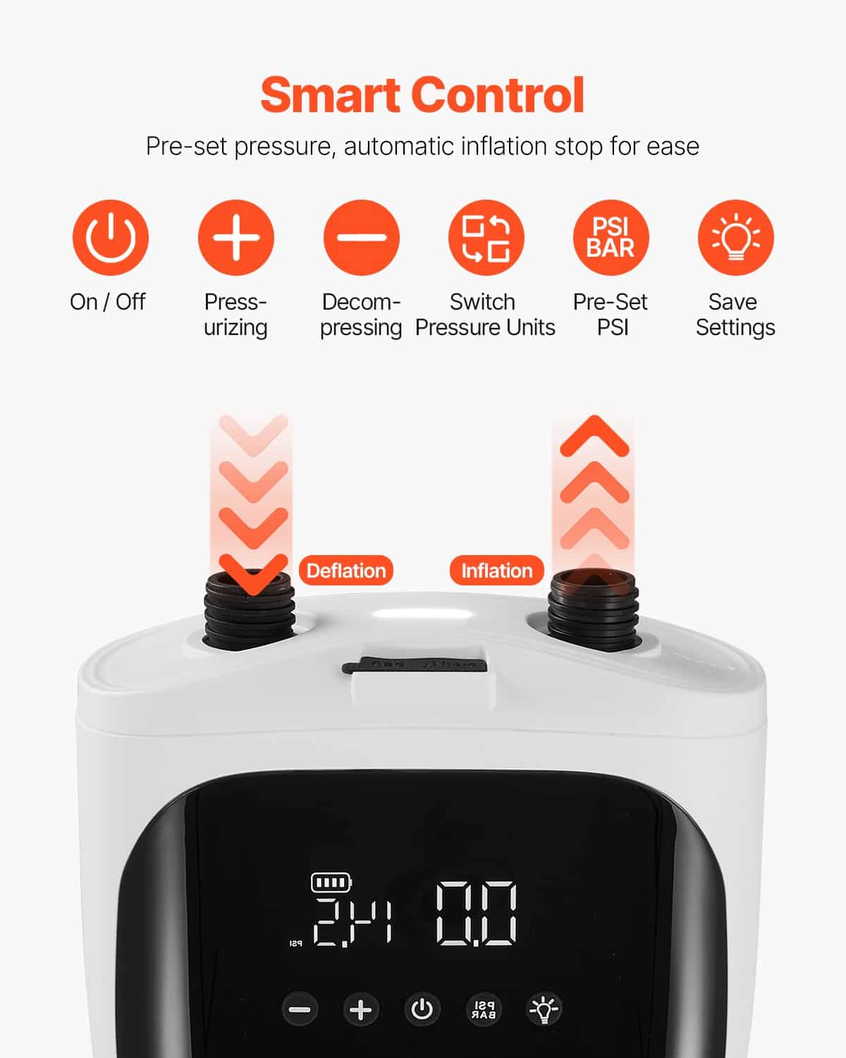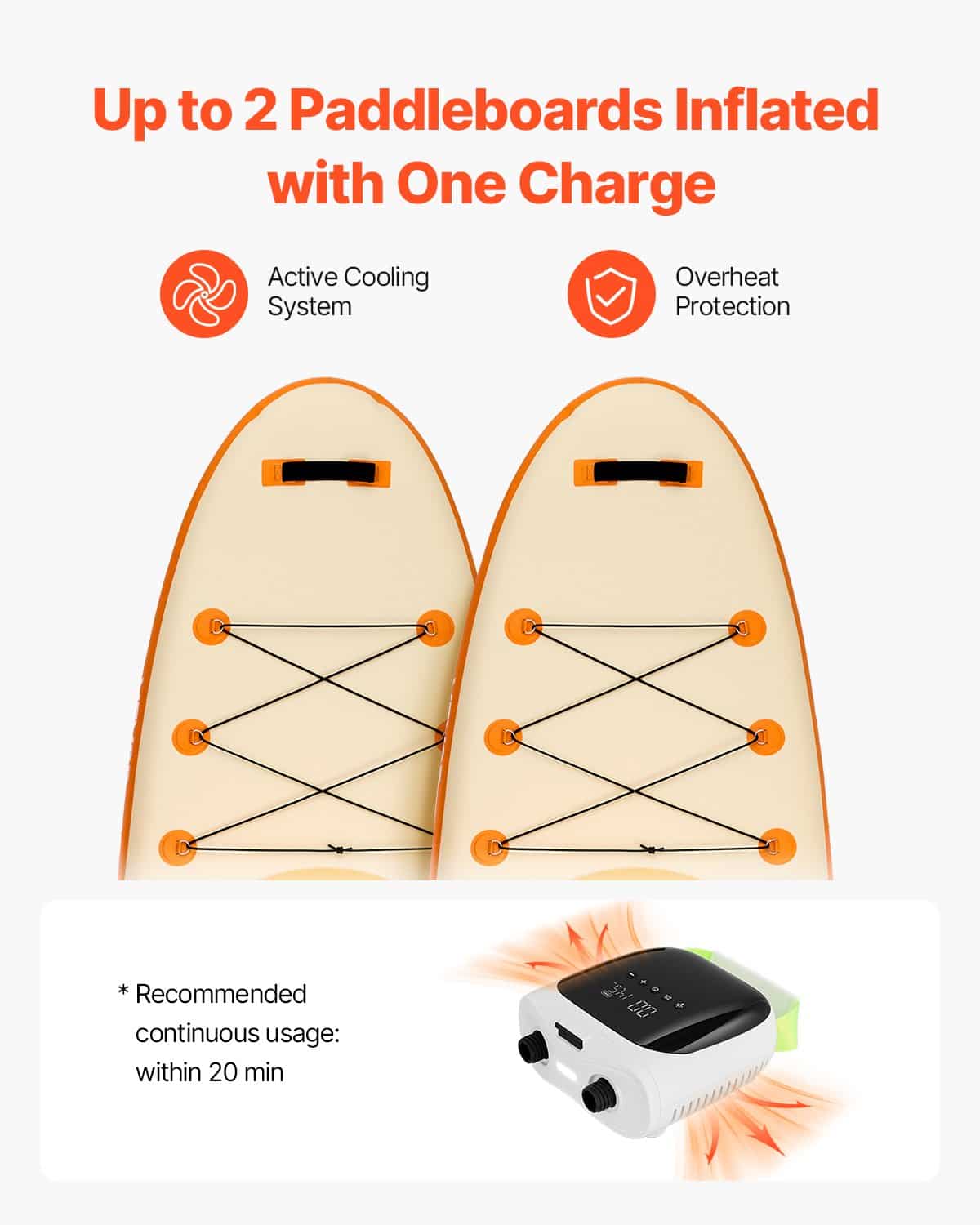 VEVOR Paddle Board Pump, 20PSI High Pressure, Rechargeable Battery-Powered, Dual Stage Electric SUP Air Pump with Auto-Off and Deflation Function, Ideal for Inflatable Paddle Board, Tent and Mattress