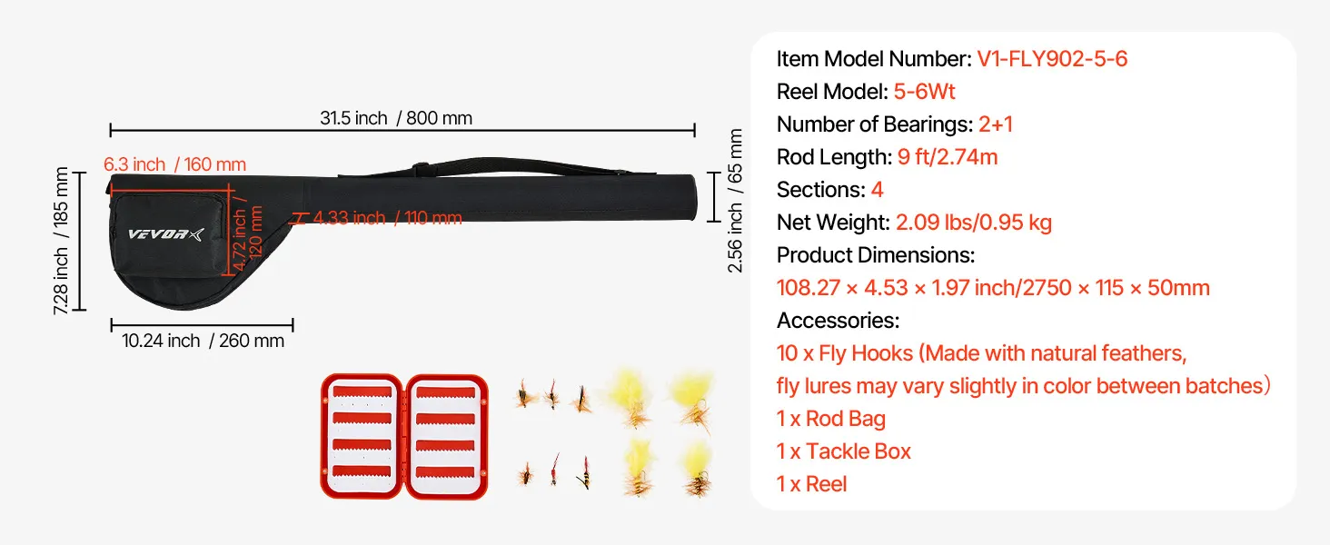 VEVOR Fly Fishing Combo Kit, IM7 Carbon Fly Fishing Rod and Reel Combo, Starter Fly Rod and Reel Outfit with Rod Bag, Tackle Box, 6 Short-Tail & 4 Long-Tail Fly Hooks, for Travel, Holiday Choice
