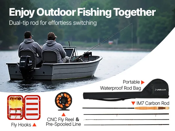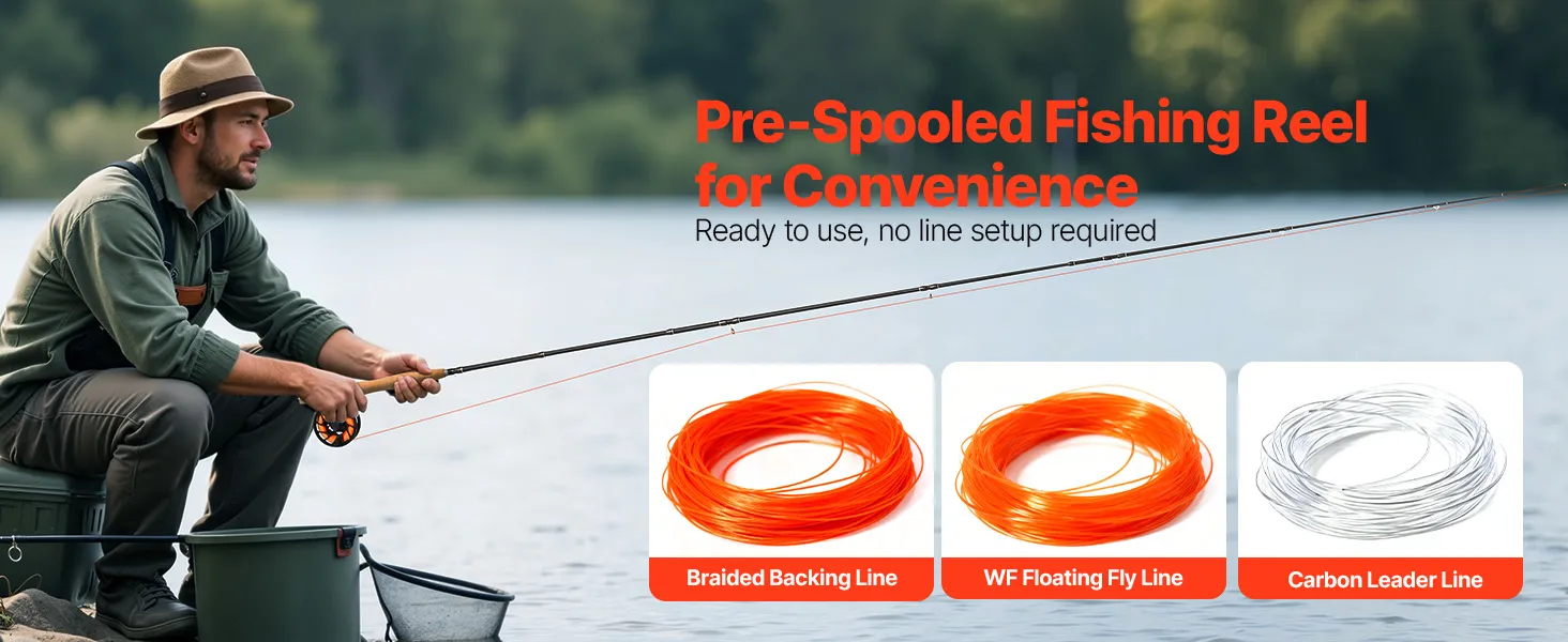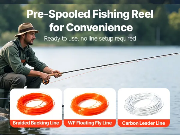 The fly fishing rod and reel features a pre-spooled reel with premium braided line, a WF floating fly line, and a carbon leader, so there's no need for extra spooling. This ready-to-use setup allows both beginners and seasoned anglers to start fishing immediately and enjoy their time on the water.
