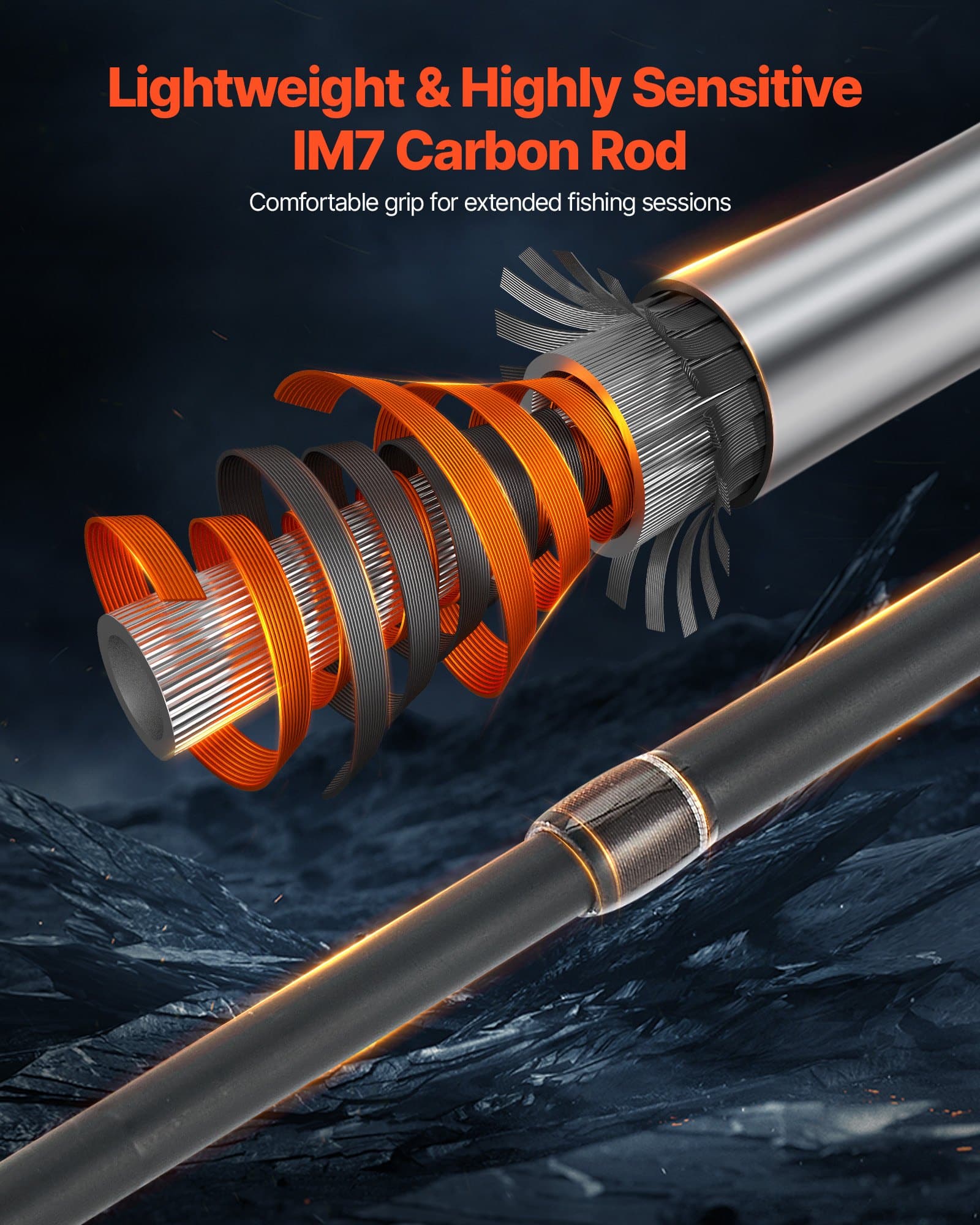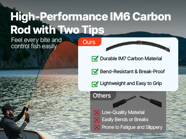 Our fly rod and reel combo features an IM7 carbon rod with excellent bending resistance, making it less likely to break. The lightweight design ensures long-lasting comfort, while still offering the power needed to easily handle the strong tugs from different types of fish.