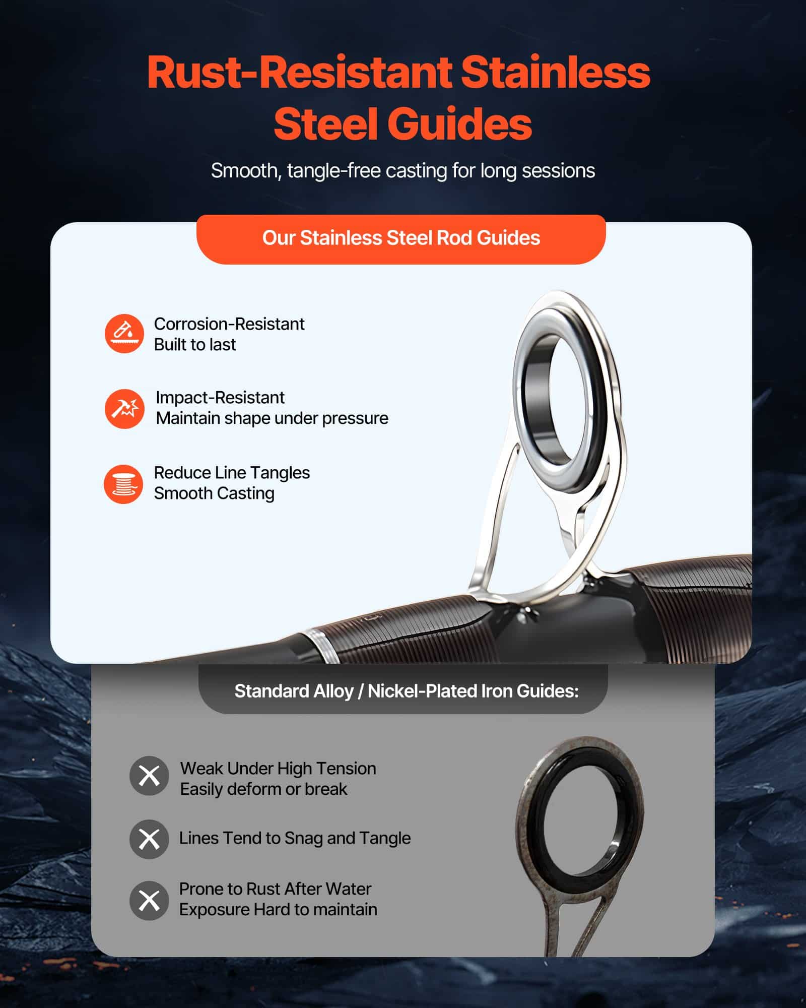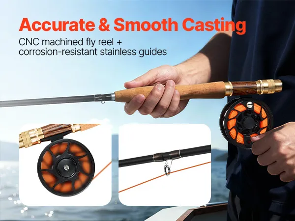 With a CNC-machined aluminum fly reel, this fly fishing starter kit delivers smooth, wobble-free rotation for precise casting. The corrosion-resistant stainless steel guides reduce friction, ensuring effortless line release and making every cast more accurate for a better fishing experience.