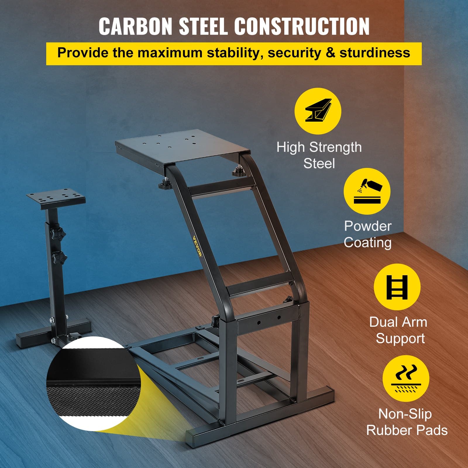 VEVOR Sacīkšu Simulatora Stūres Stends Logitech G29, G27, G25, Regulējams Augstums 57-72.5 cm (22.4"-28.5"), Izturīgs Oglekļa Tērauds, Saderīgs ar PS4, G920, T300RS, Fanatec