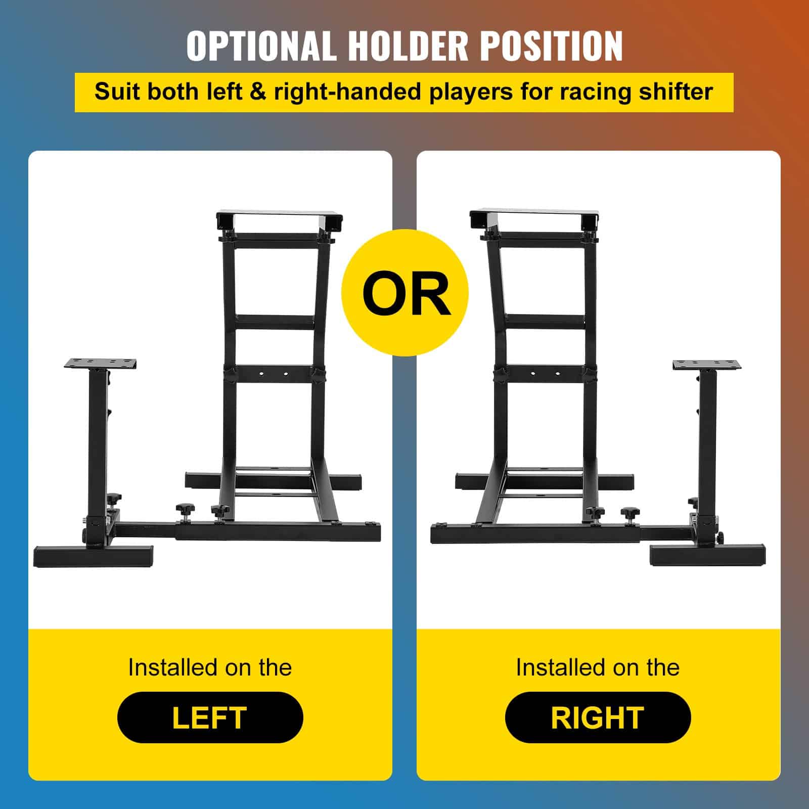 Spēļu riteņa statīva pārnesumu pārslēga turētāju var elastīgi uzstādīt abās pusēs. Tātad neatkarīgi no tā, vai braucat pa kreisi vai pa labi, varat izmantot mūsu kronšteinu, lai izbaudītu simulācijas sacīkšu spēles.
