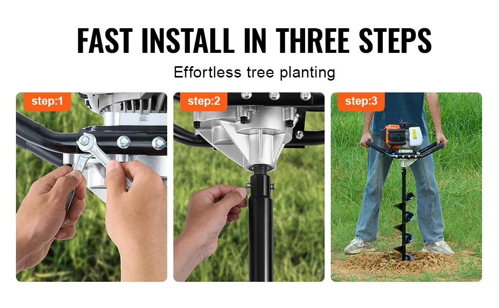 Ar tikai trim uzstādīšanas darbībām un nekādu sarežģītu darbību, šis urbis atvieglo dārza darbu sākšanu un ātru paveikšanu.