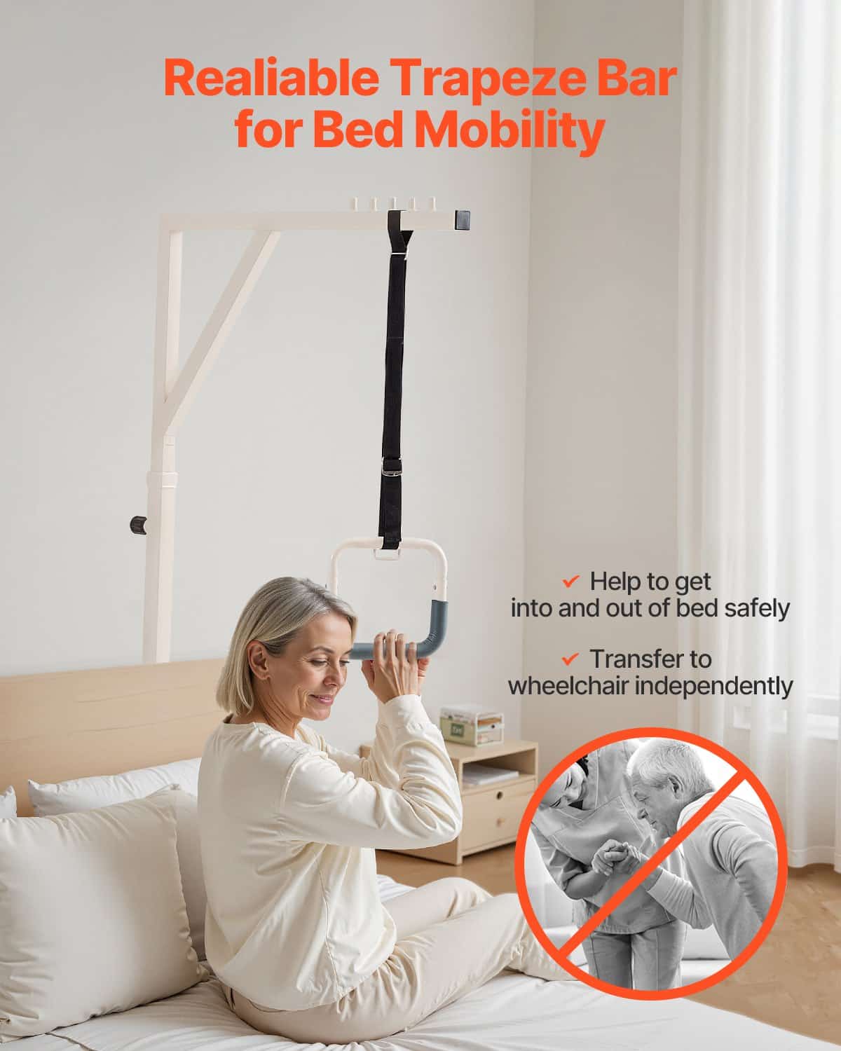 Gultas pārvietošanās grūtības vairs nav apgrūtinājums! Mūsu trapeces stienis gultas pārvietošanai ir paredzēts cilvēkiem ar ierobežotu mobilitāti, nodrošinot stabilu atbalstu, lai palīdzētu apsēsties un pārsēsties ratiņkrēslā. Tas veicina neatkarīgu pārvietošanos un drošāku pārvietošanos, atgūstot brīvību un pārliecību.