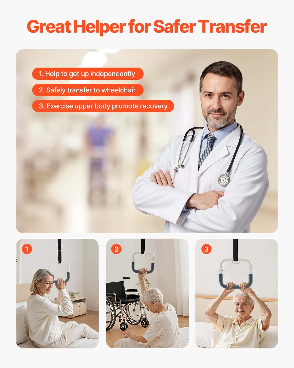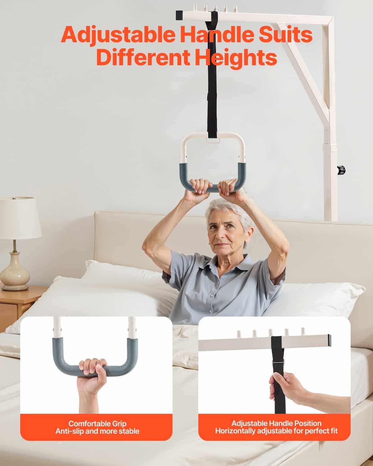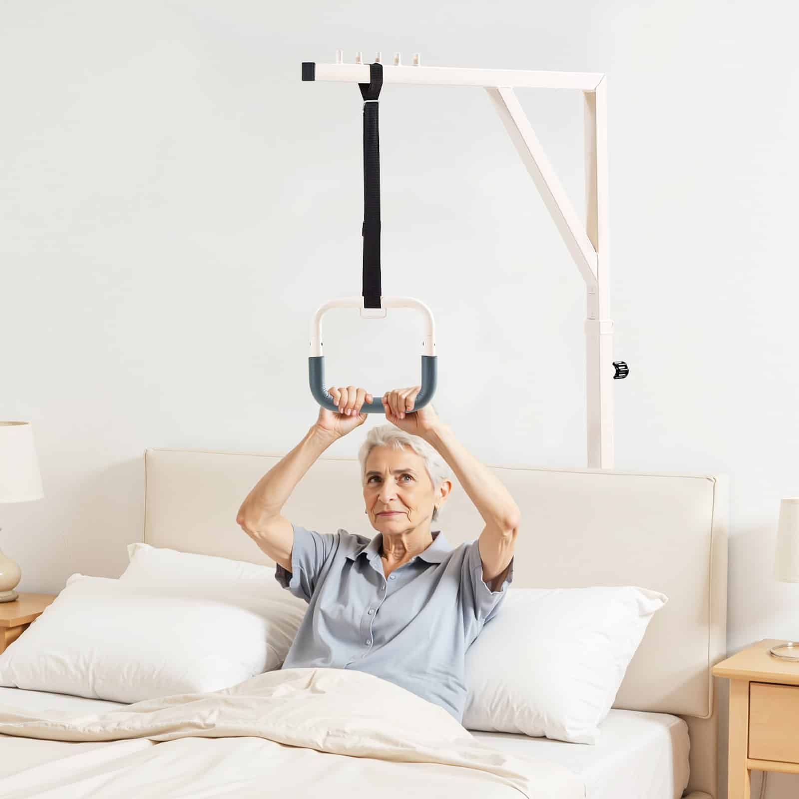 Neatkarīgi no tā, vai tā ir parasta asināšanas gulta, aprūpes gulta vai slimnīcas gulta, šī gultas trapece ir plaši saderīga, piedāvājot stabilu un uzticamu atbalstu. Ideāli piemērota aprūpei mājās vai slimnīcā, tā atbilst jūsu dažādajām vajadzībām, palīdzot lietotājiem droši pielāgot pozas un veicinot atveseļošanos un mobilitāti.