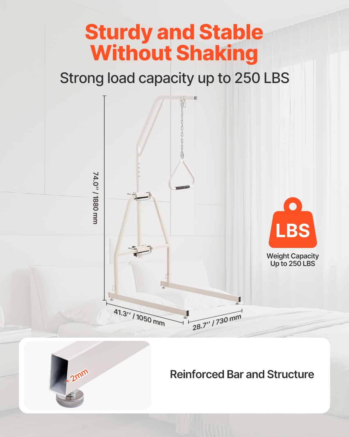 VEVOR Trapeze Bar for Bed Mobility, Bed Trapeze with Clamps and Floor Stand, 250LBS Weight Capacity Pull Up Assist Bar for Elderly, Patients & Disabled, Suitable for Home Care, Hospital, Nursing Home