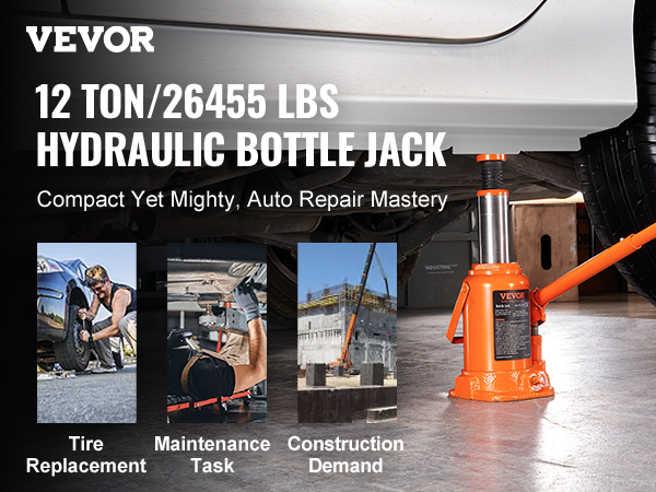 VEVOR 12 tonnas (24,000 lbs) hidrauliskais pudeļu domkrats - 190-355 mm (7.5-14 collas) pacelšanas diapazons, 3 sekciju rokturis automašīnām, kravas automašīnām, RV, auto remontam un rūpnieciskai lietošanai