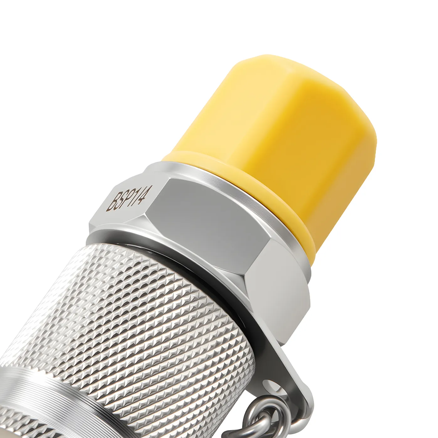 The hydraulic pressure test kit includes protective plastic caps that shield the external threads from impacts, avoiding the test fittings from wear or deformation.