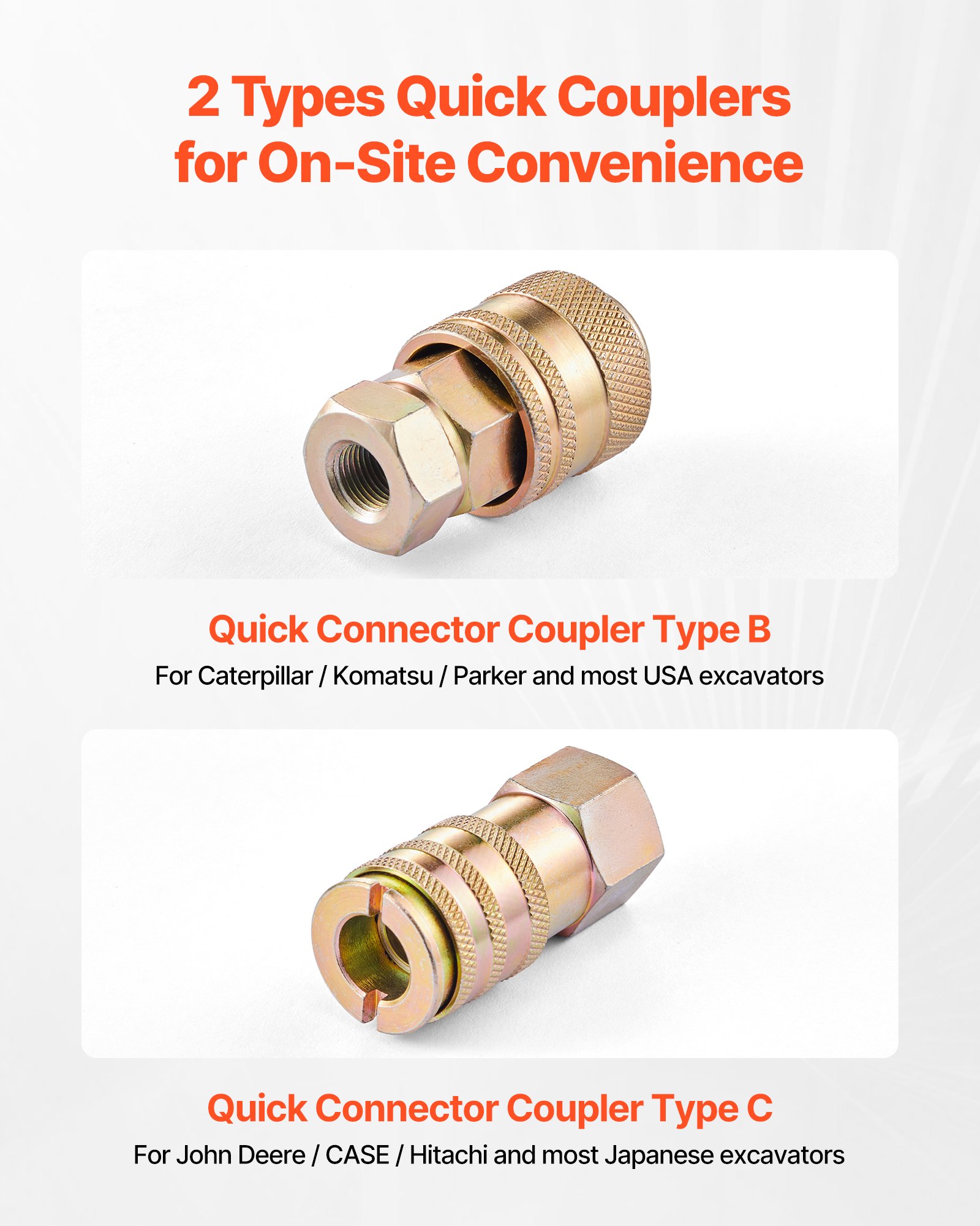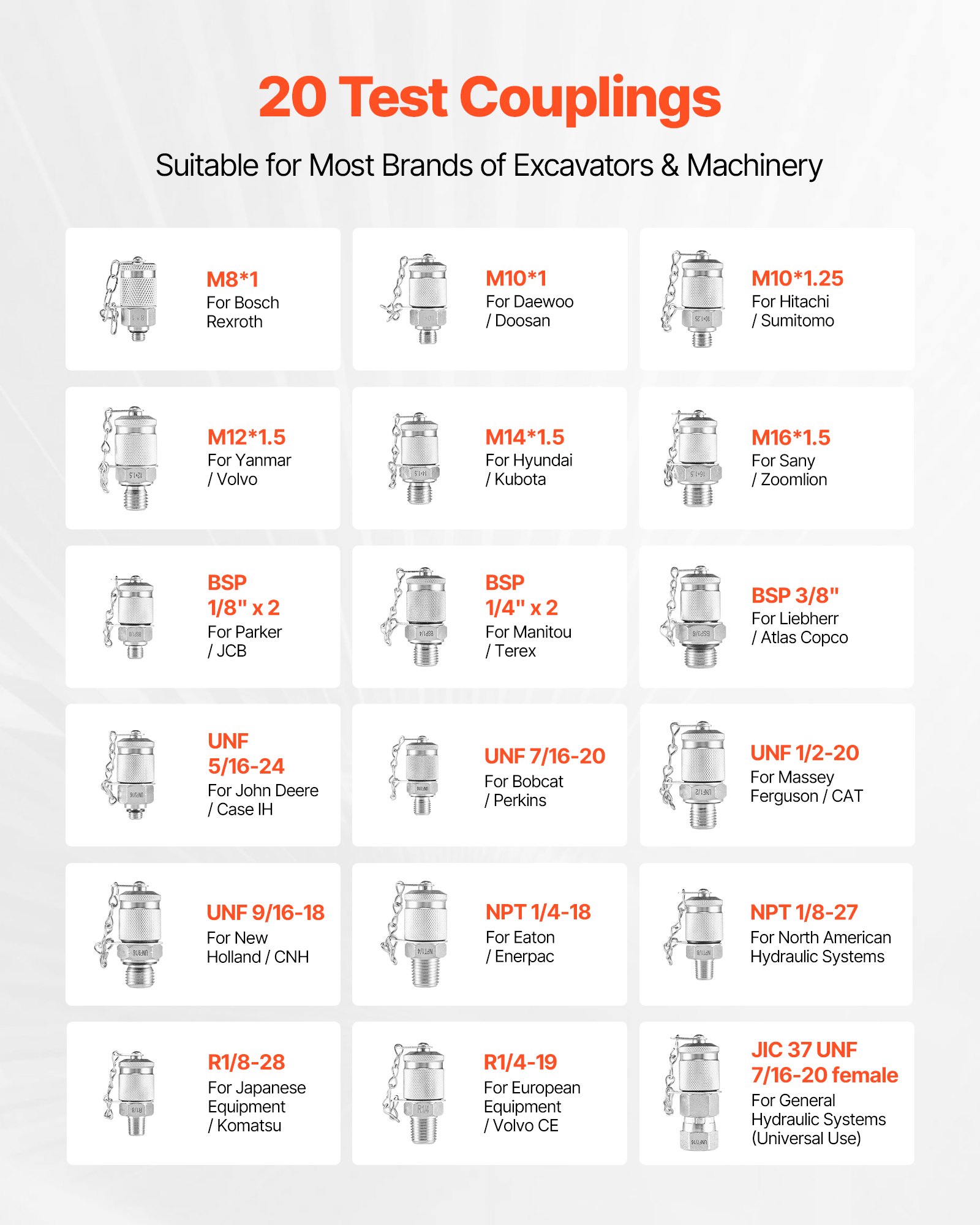 VEVOR Hydraulic Pressure Test Kit, 10/60/160/400/600 Bar (150/900/2300/6000/9000 PSI), Hydraulic Gauge Kit 5 Gauges 20 Couplings 4 Quick-Release Couplers 3 Hoses for Excavator Construction Machinery