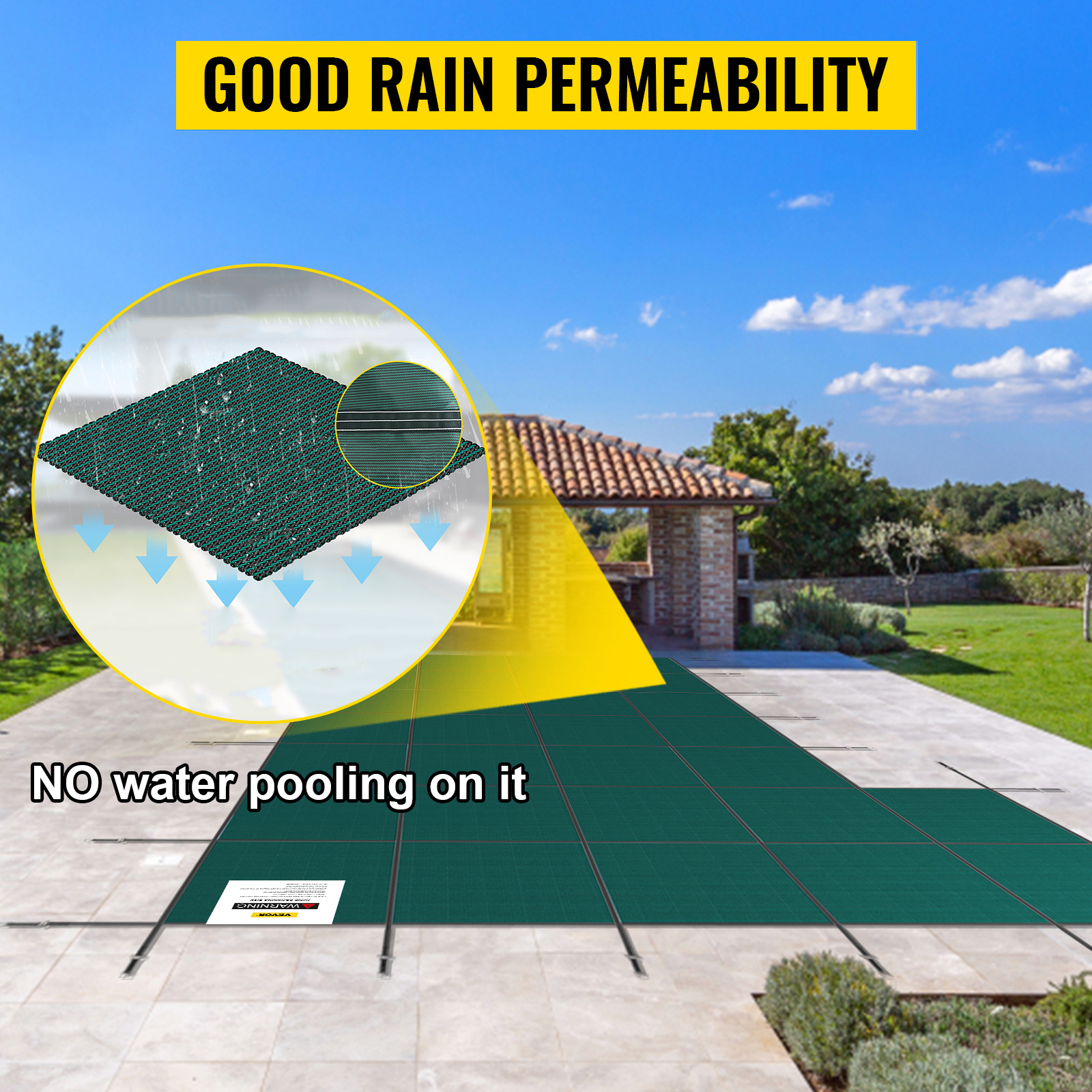 VEVOR Inground Pool Safety Cover, 18 ft x 34 ft Rectangular Winter Pool Cover with Left Step, Triple Stitched, High Strength Mesh PP Material, Good Rain Permeability, Installation Hardware Included
