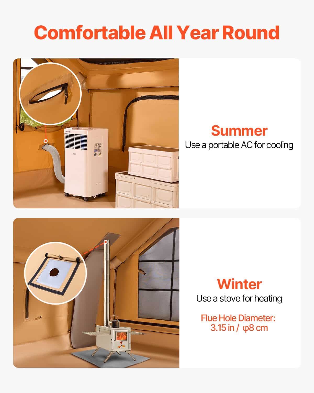 VEVOR Inflatable Tents for Camping, 5-8 Person Easy Setup Blow up Tent with Hand Pump, Luxury Glamping Tent with 2 Skylights, Canopy, Stove Jack 2 Doors & Mesh Windows (Storage Bag Included)