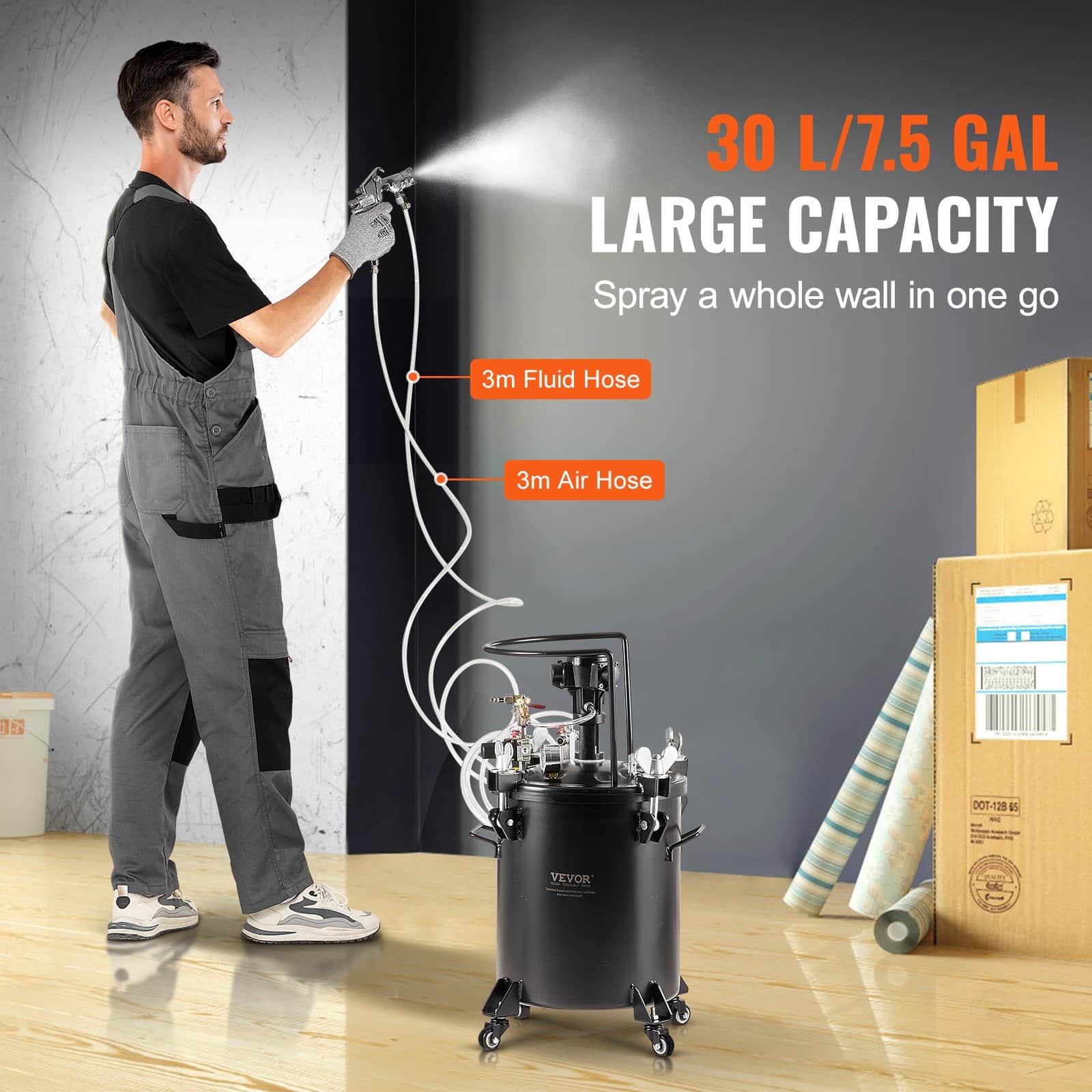 VEVOR Spray Paint Pressure Pot, 30 L/7.5 gal Fully Automatic Stirring Pressure Pot Tank, 70 psi Adjustale Pressure, Pressure Pot Paint Tank with Spray Gun and Hoses, for Home Decor Industry Painting