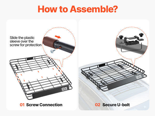 Ar četrām universālām U veida skrūvēm uzstādīšana un noņemšana ir pavisam vienkārša. Šis jumta bagāžnieka kravas turētājs viegli pieguļ lielākajai daļai jumta šķērsstieņu. Iekļautās skrūves nodrošina vienkāršu montāžu, un plastmasas uzmava pasargā skrūves no bojājumiem.