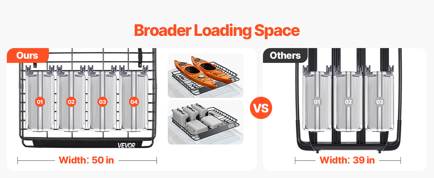 This roof rack cargo basket allows your roof to carry more luggage and gear, even accommodating larger or irregularly shaped items like bikes, paddleboards, and tents. No more worrying about leaving things behind because they won't fit.