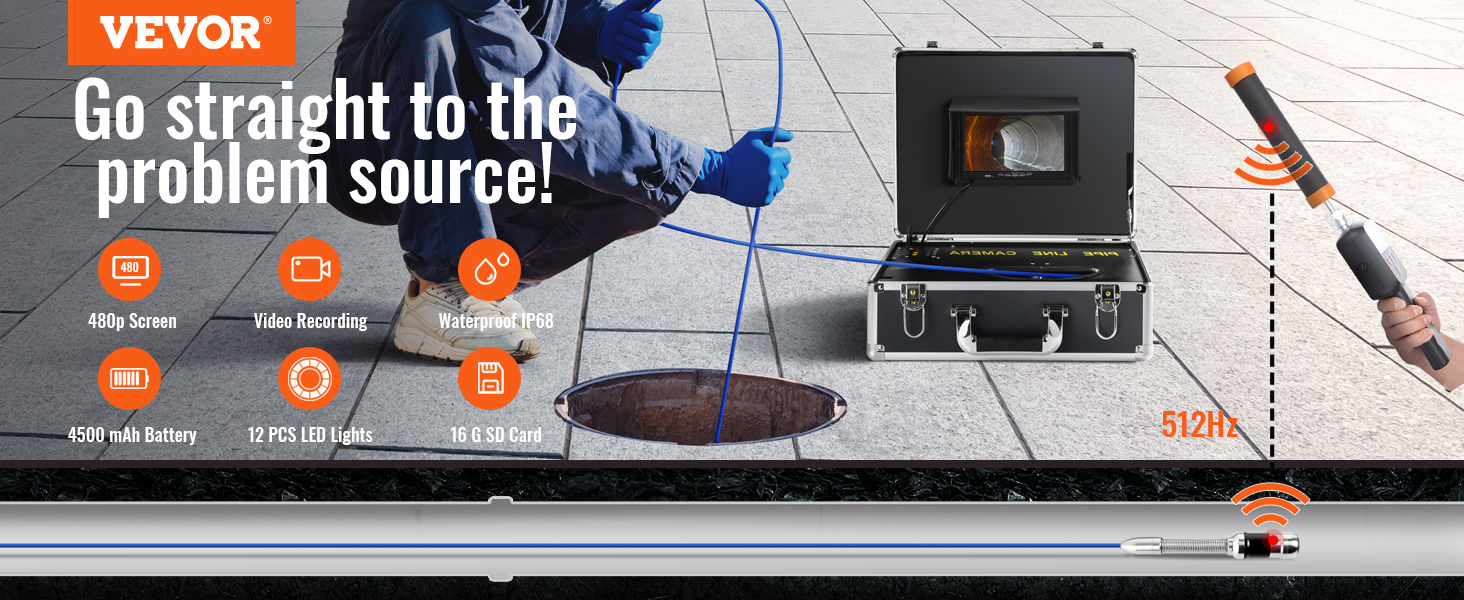 Mūsu augstas kvalitātes 7 collu kanalizācijas pārbaudes kamera ar 1000 TVL var sniegt vizuālu priekšstatu par cauruļu stāvokli. Jūs varat to izmantot, lai kontrolētu jebkuru telpu un atrastu risinājumu ar VEVOR!