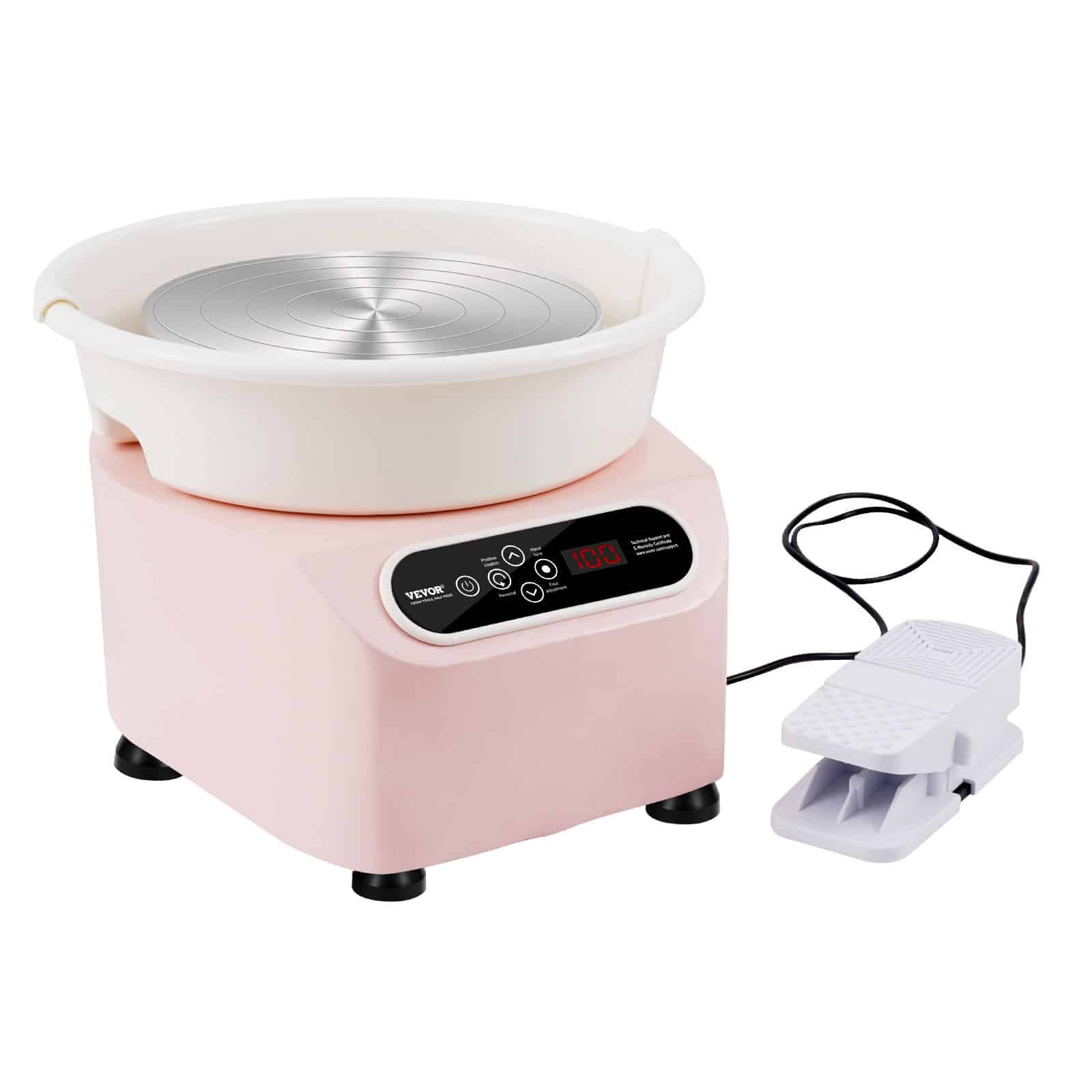 VEVOR Pottery Wheel 11in/27.9 cm Ceramic Wheel Foot Pedal Touch Screen Apron 450W Pink